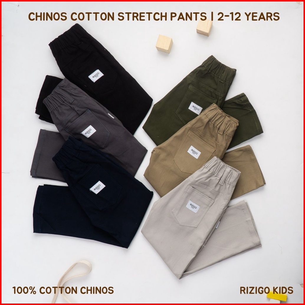 Rizigo Kids Celana Chinos Cotton Stretch Anak Laki Laki Perempuan 2-12 Tahun