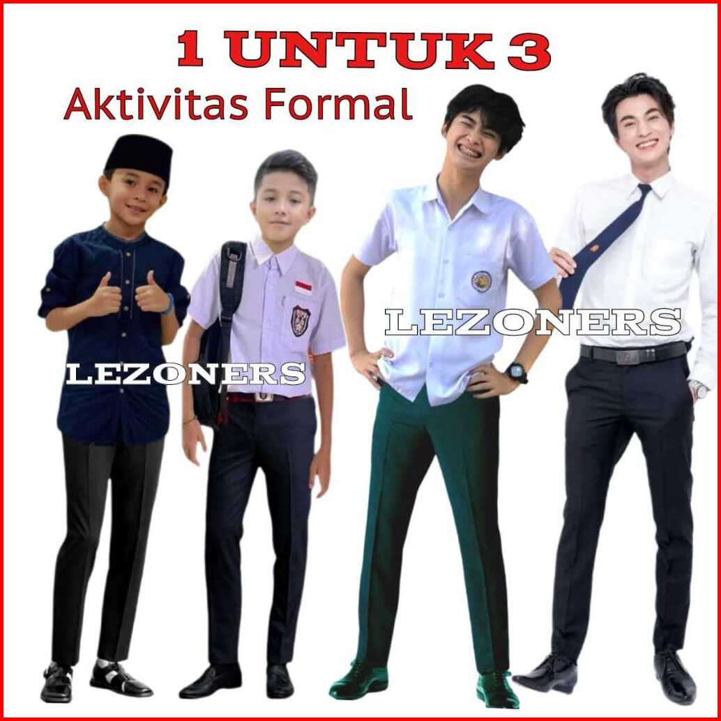 Lezoners - Celana Panjang Pria Bahantebal Halus Celana Formal Anak Sekolah Laki Laki Dan Pria Dewasa Kerja Kantor Slim F