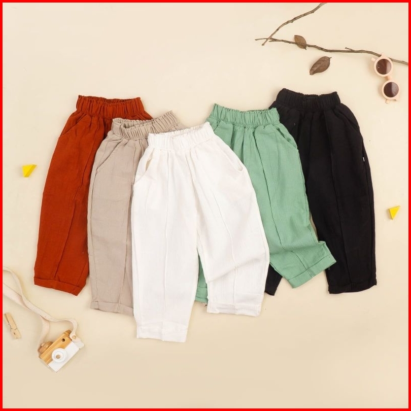 1-13 Tahun Naomi Baggy Pants Celana Panjang Anak Perempuan Model Baggy Bahan Linen Crinckle Linen Angel