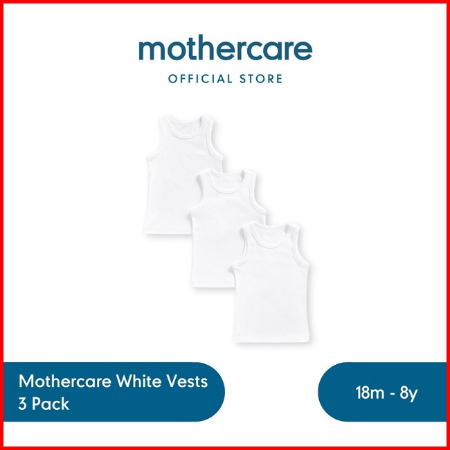 Mothercare White Vests - 3 Pack - Pakaian Dalam Anak Laki-laki Putih