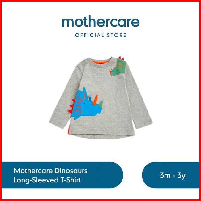 Mothercare Dinosaurs Long-sleeved T-shirt - Kaos Bayi Laki-laki Abu-abu