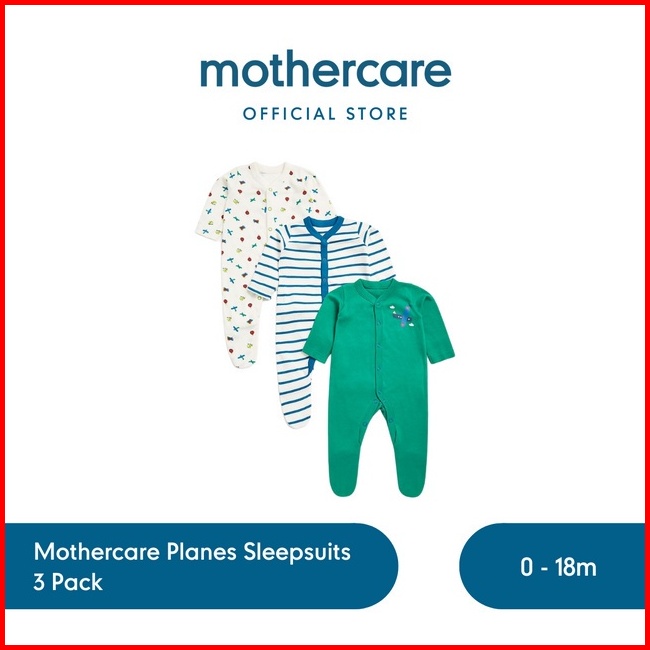 Mothercare Planes Sleepsuits - 3 Pack - Set Pakaian Tidur Bayi Laki-laki Multi
