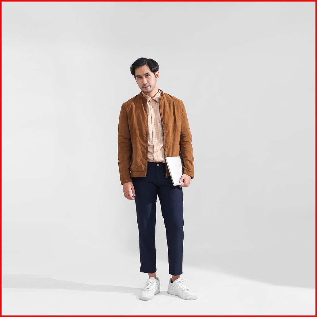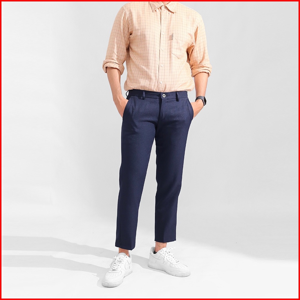 Hrstuff Ankle Pants Pria Celana Bahan Formal Slim Fit Warna Navy
