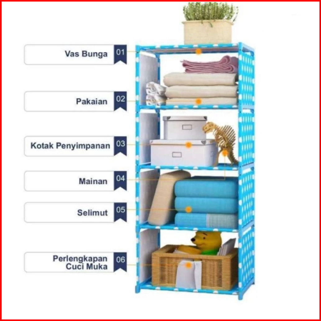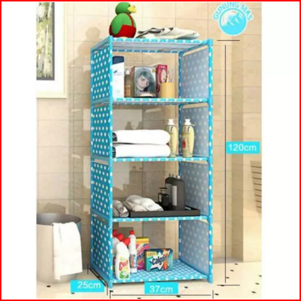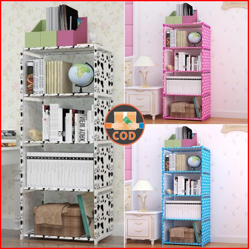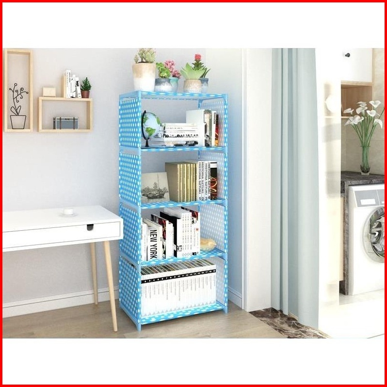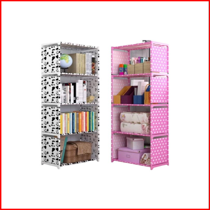 Faus Rak Buku 4 Susun 5 Tingkat Portable Serbaguna Rak Lemari Buku 5 Layer 4 Tingkat Multifungsi Sepatu Pakaian Baju