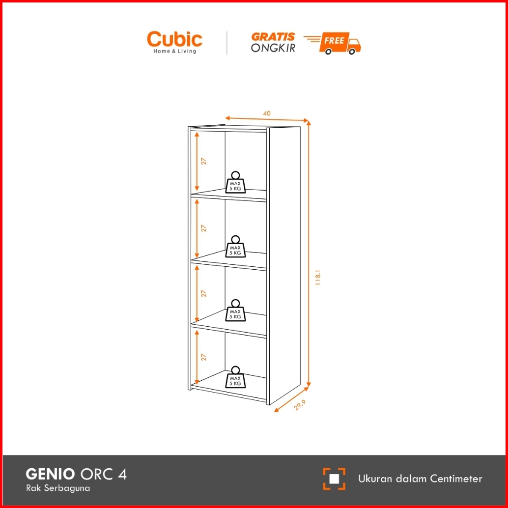 Cubic Rak 4 Susun Minimalis Lemari Buku Serbaguna Genio Orc 4 - Motif Kayu