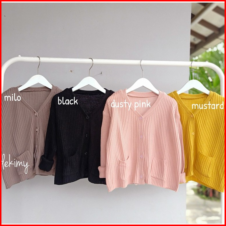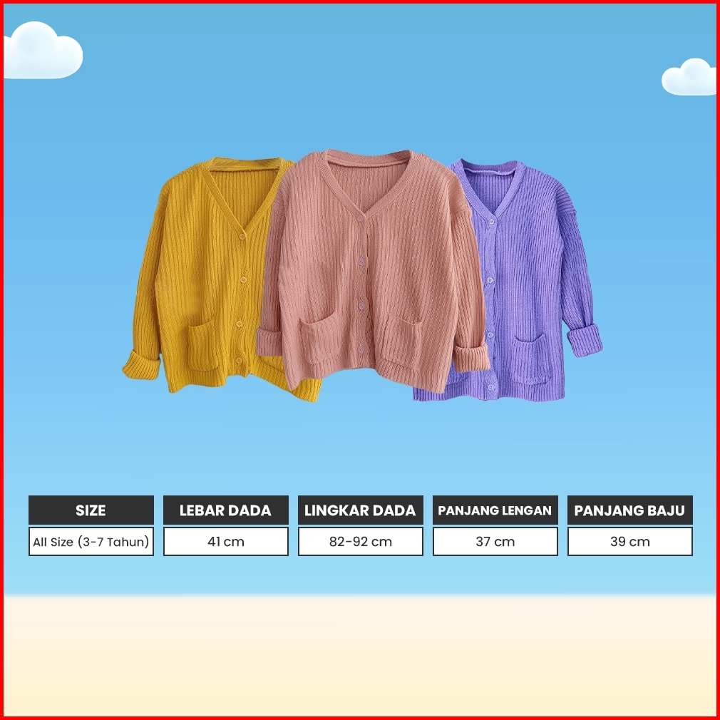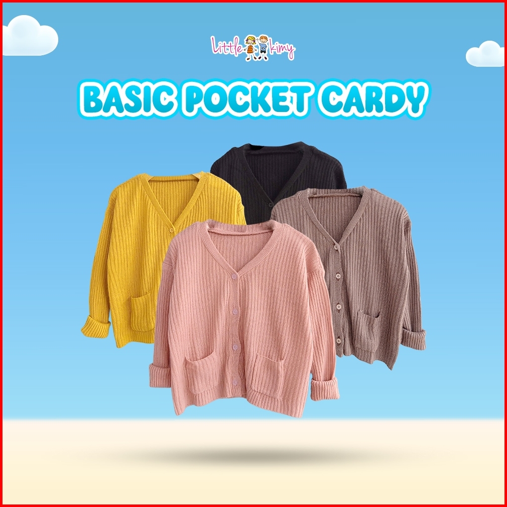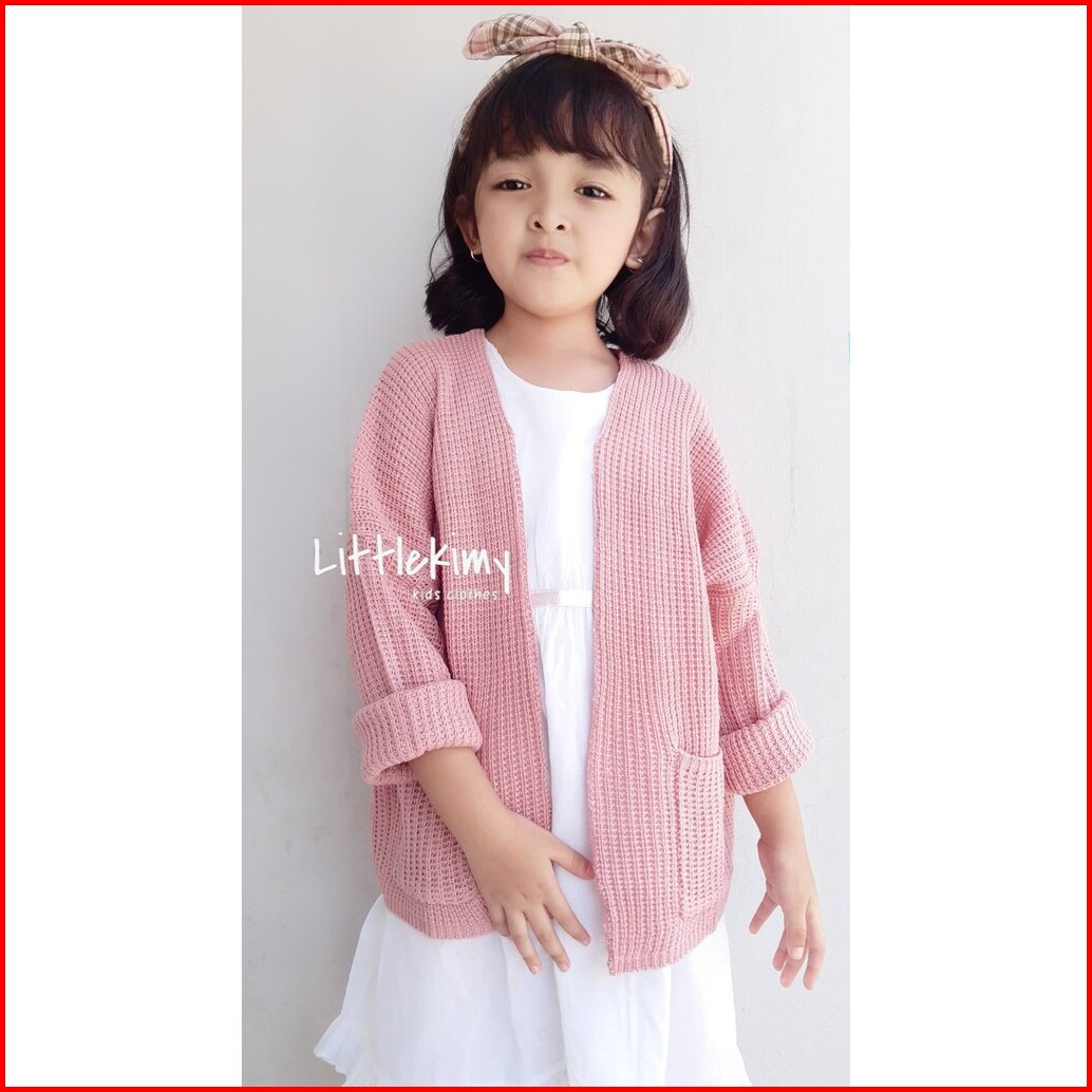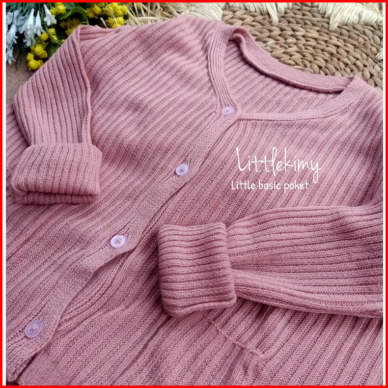 Littlekimy - Cardigan Anak Sweater Rajut Tebal Dan Lembut Basic Pocket Usia 3 Sd 7 Tahun Original