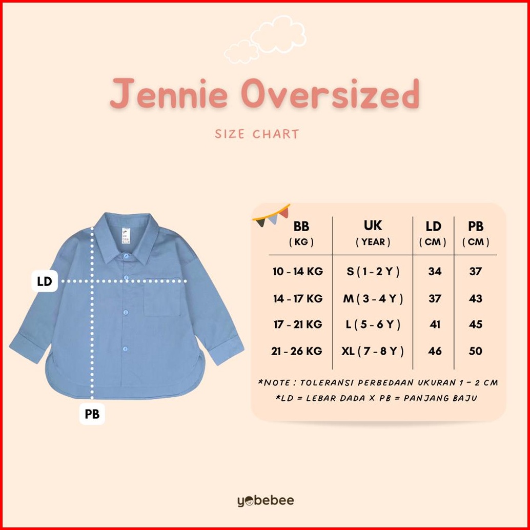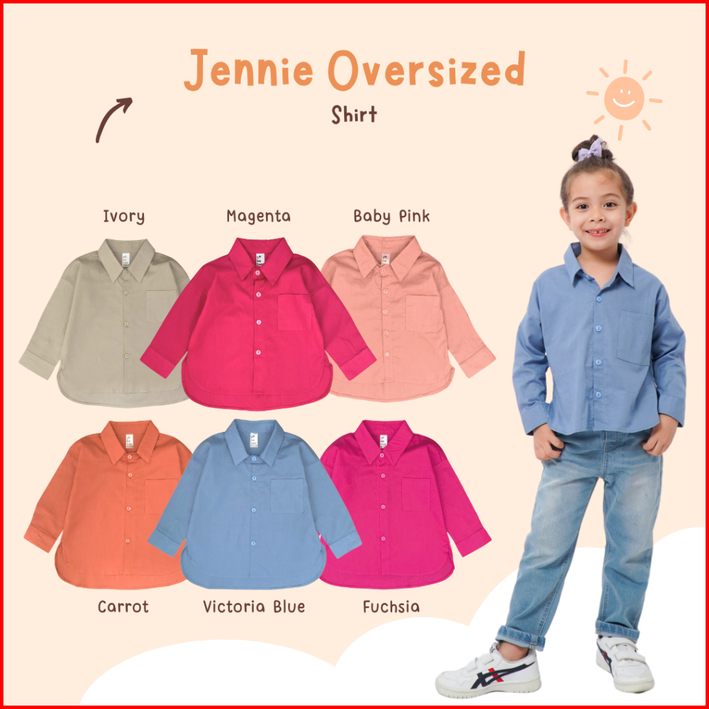 Yobebee Kemeja Katun Jennie Oversize Anak Perempuan Usia 2 4 6 8 Tahun Atasan Panjang Anak Cewek