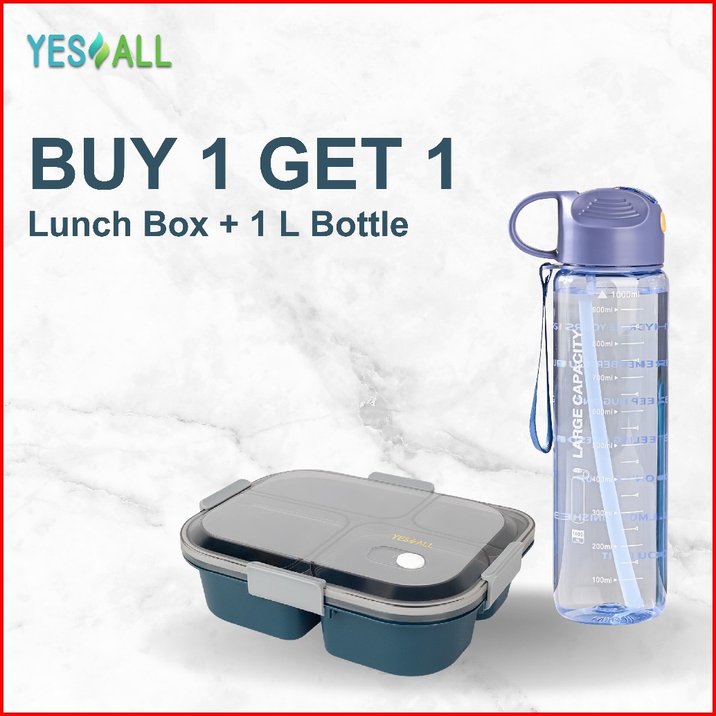 Buy1get1 Yesall Lunch Box Botol Minum Transparan 1000ml - Kotak Makan Tempat Bekal Wadah Makan Bontot Bento 4 Grid Bpa F