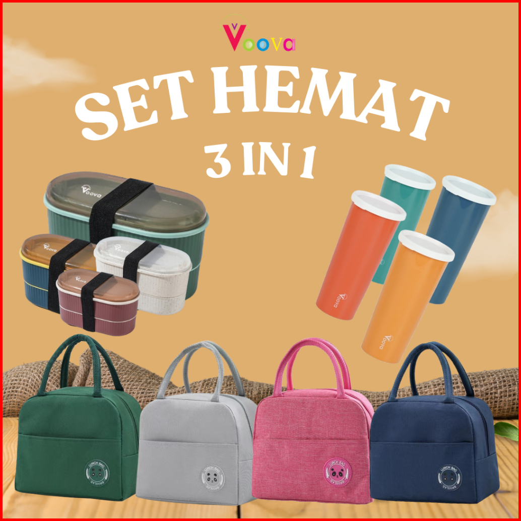 Voova Set Hemat 3 In 1 Bundling Lunch Box Bundling Lunch Bag Paket Kotak Makan Paket Alat Makan Bpa Free Food Grade