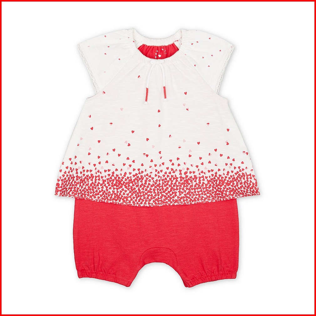 Mothercare Baby Pink Hearts Mock-top Romper - Terusan Bayi Pink