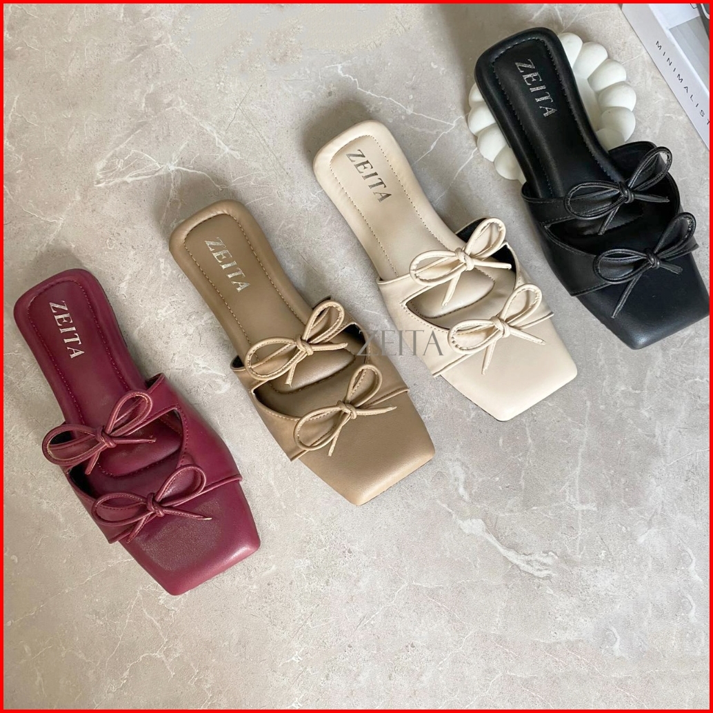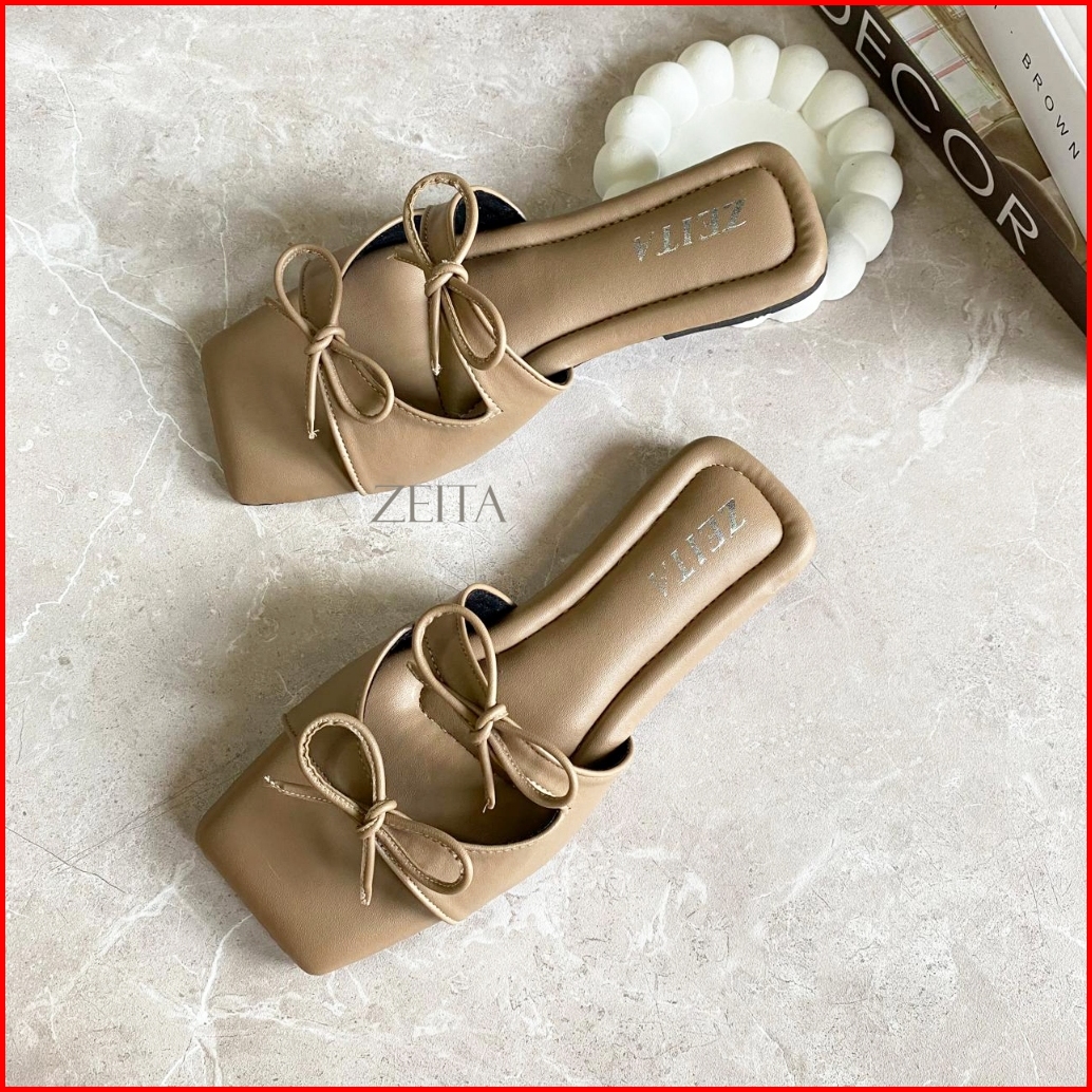 Zeita Sandal Teplek Wanita Tali Pita Lucu Sandal Coquette Maroon Model Simpel Bigsize 36-42 43 44