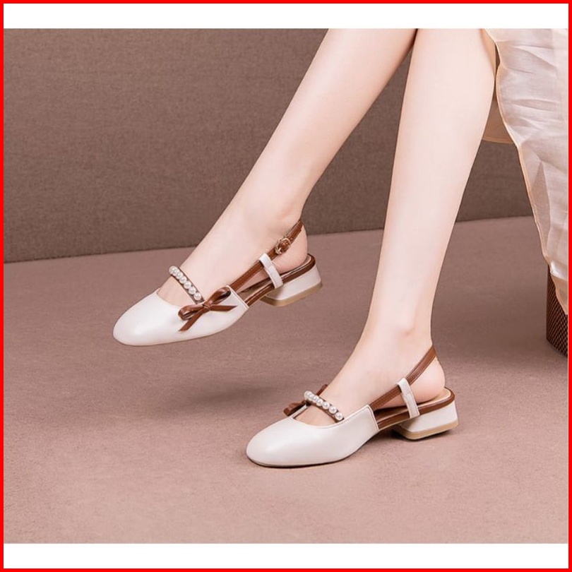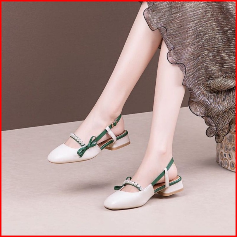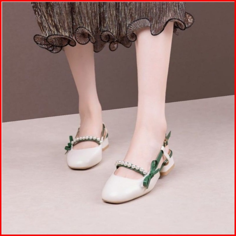 Sandal Heels Wanita Tali Strap Casual Mutiara 3cm Hs 46