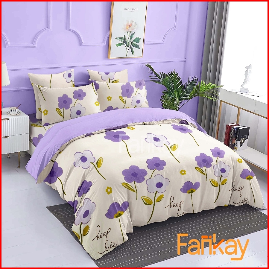 Bed Cover Set Sprei Daisy Mix Lilac - Ukuran Lengkap 90x200 - 200x200