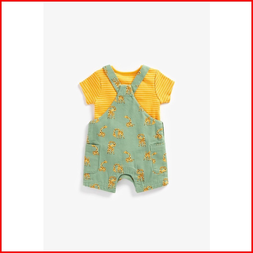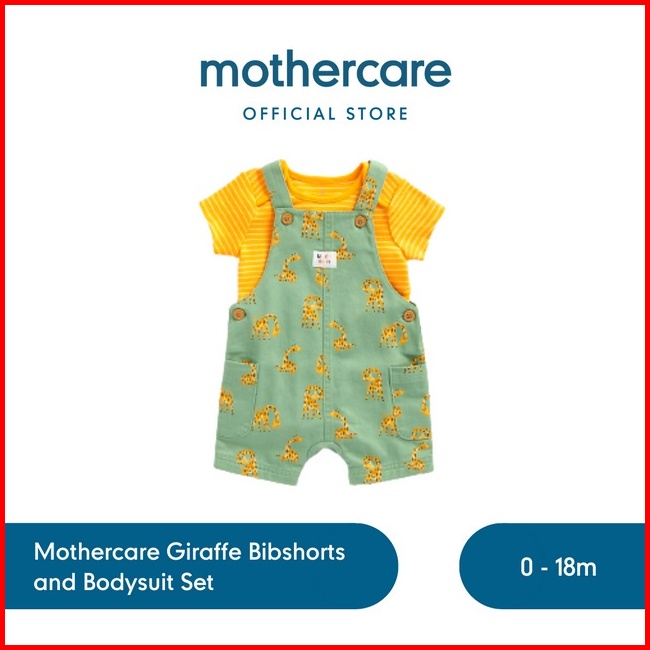 Mothercare Giraffe Bibshorts And Bodysuit Set - Setelan Pakaian Bayi Laki-laki Biru