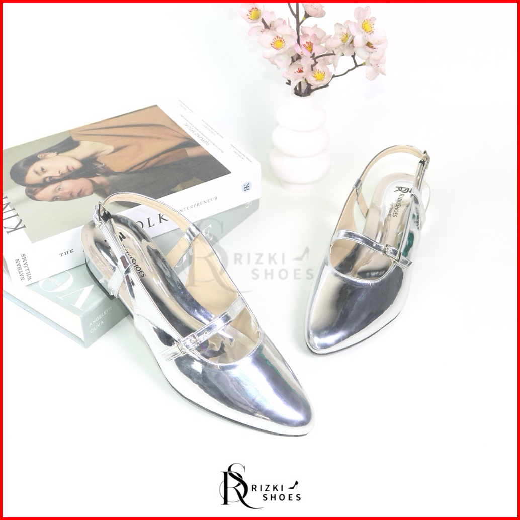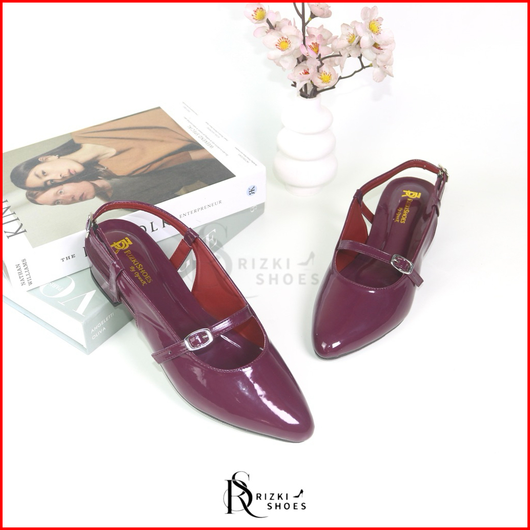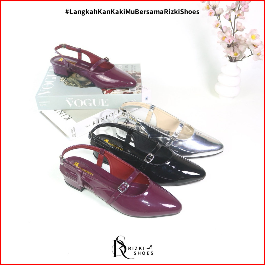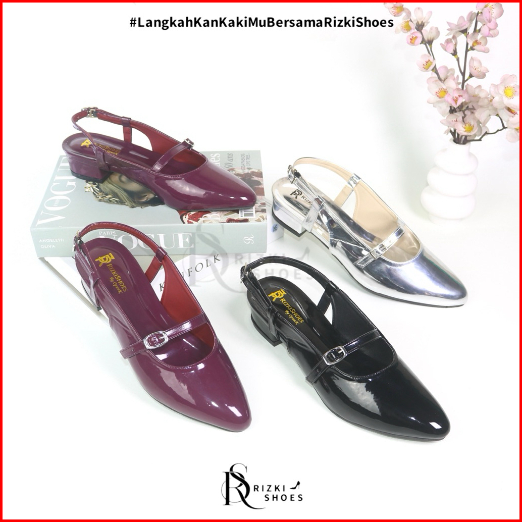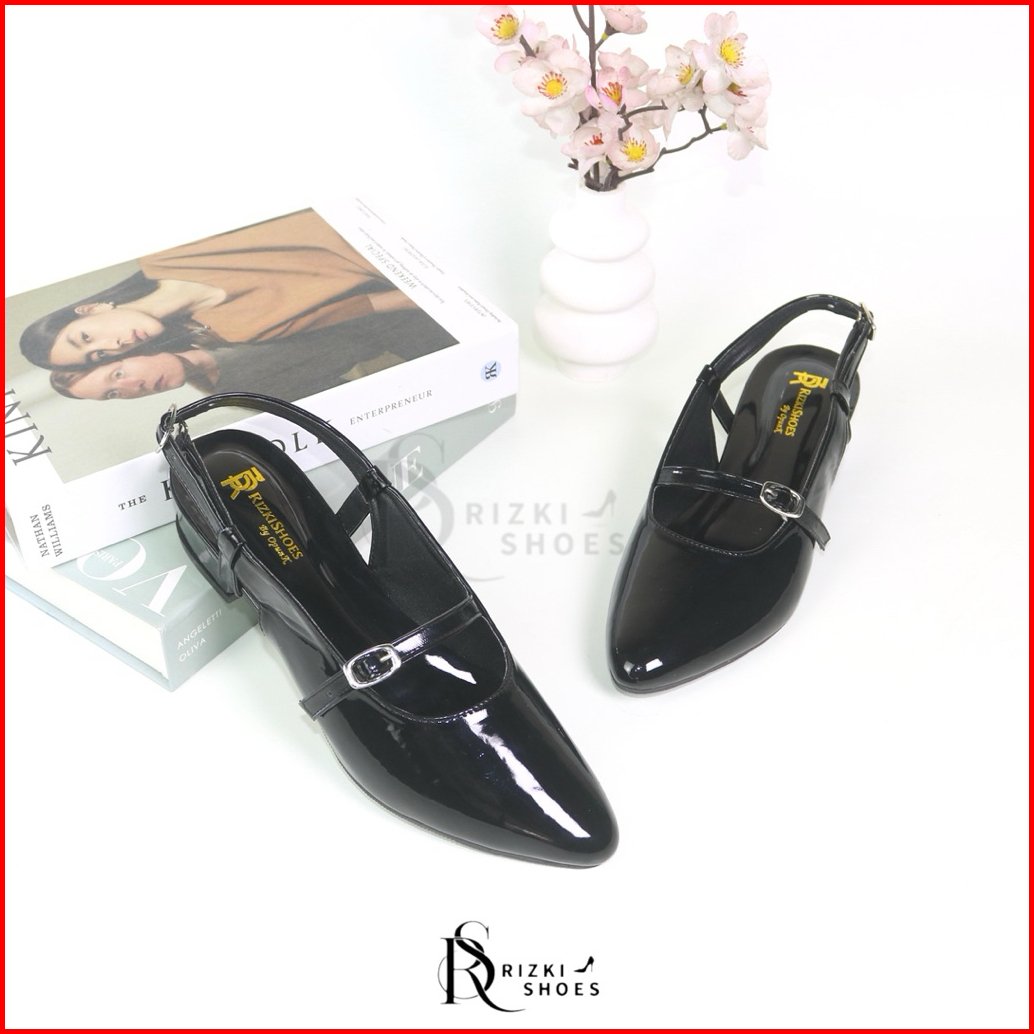 Rizki Shoes Sepatu Heels Wanita Mules Okana Hak 3 Cm Tali Gesper Sepatu Kerja Wanita Anti Slip Rk01