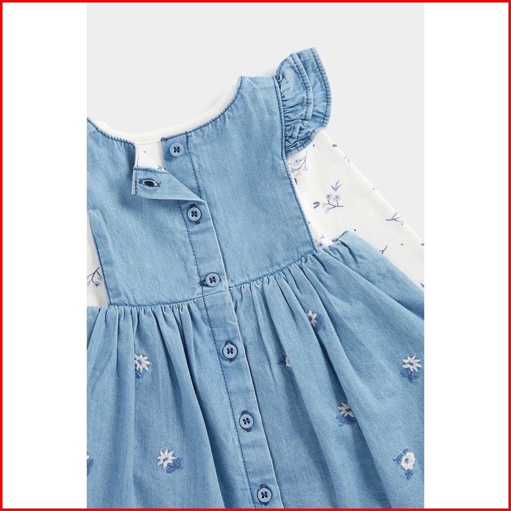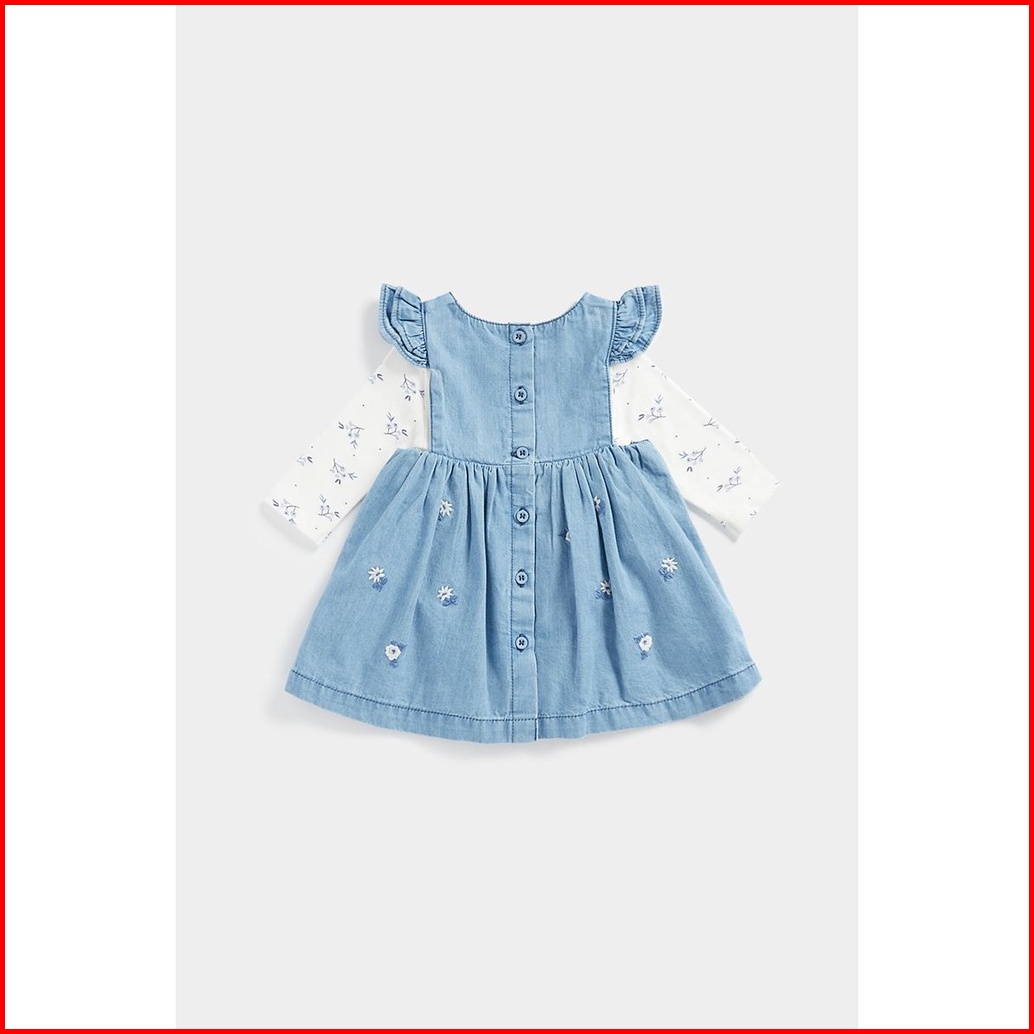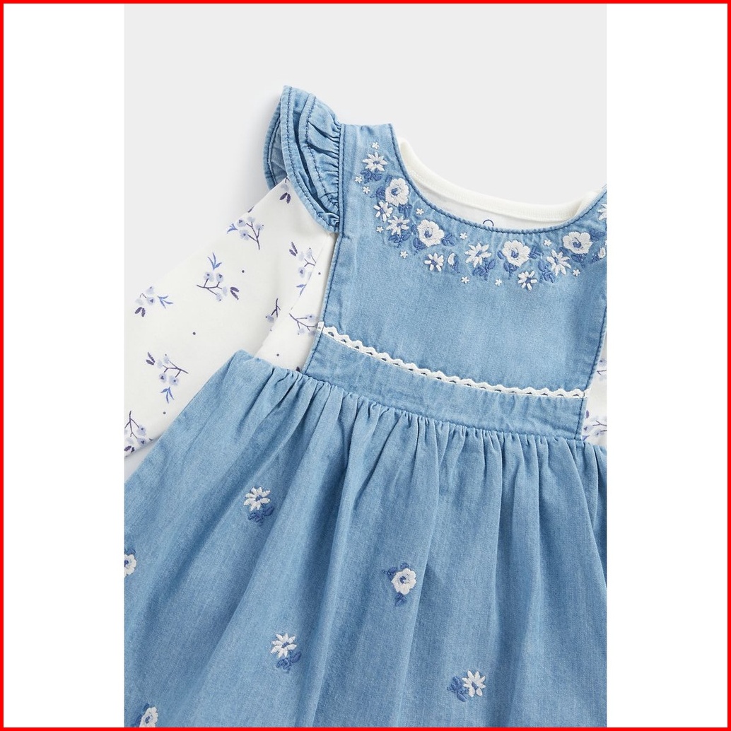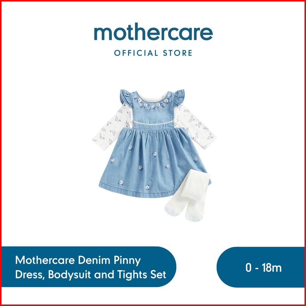 Mothercare Denim Pinny Dress Bodysuit And Tights Set - Dress Bayi Perempuan Biru