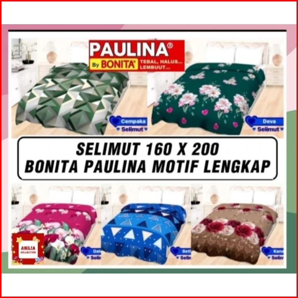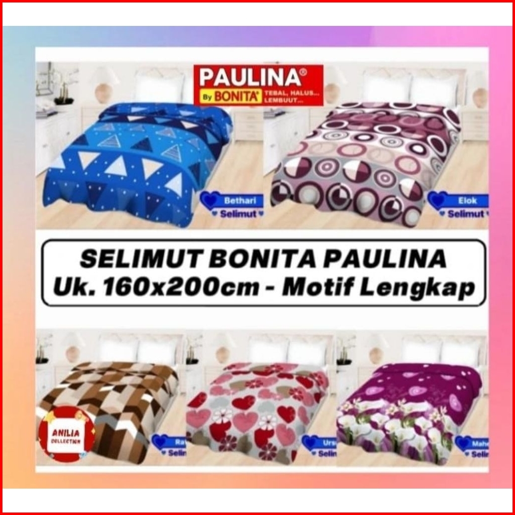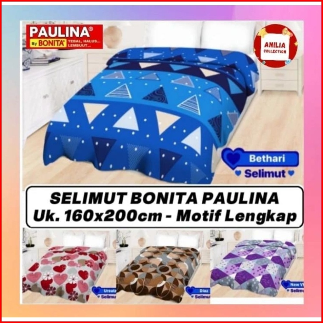 Selimut Bonita Paulina 160x200 Lembut Hangat Adem Nyaman Bonus Tas Packing Eksklusif