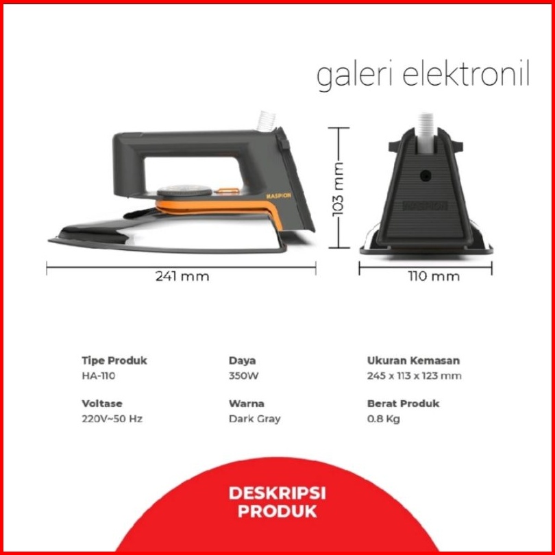 Setrika Maspion Ha110 Anti Lengket Hemat Listrik