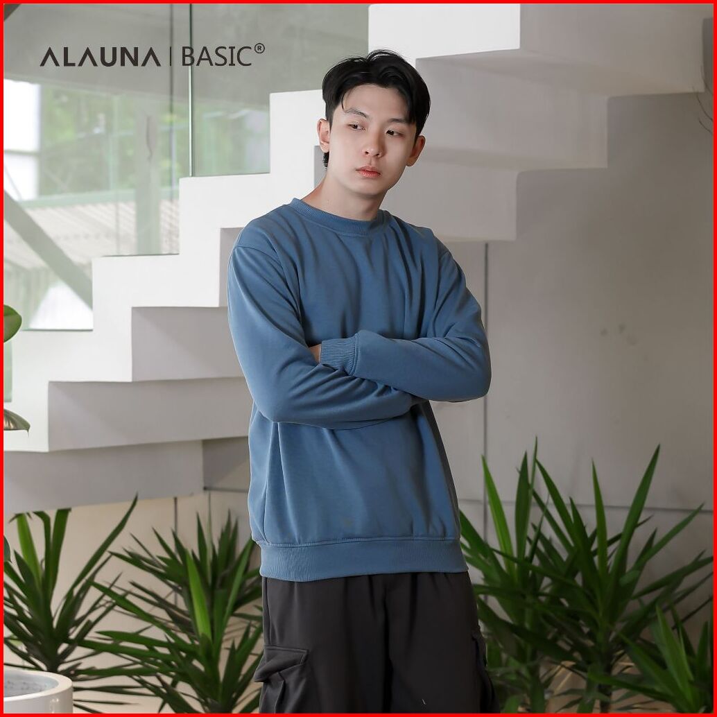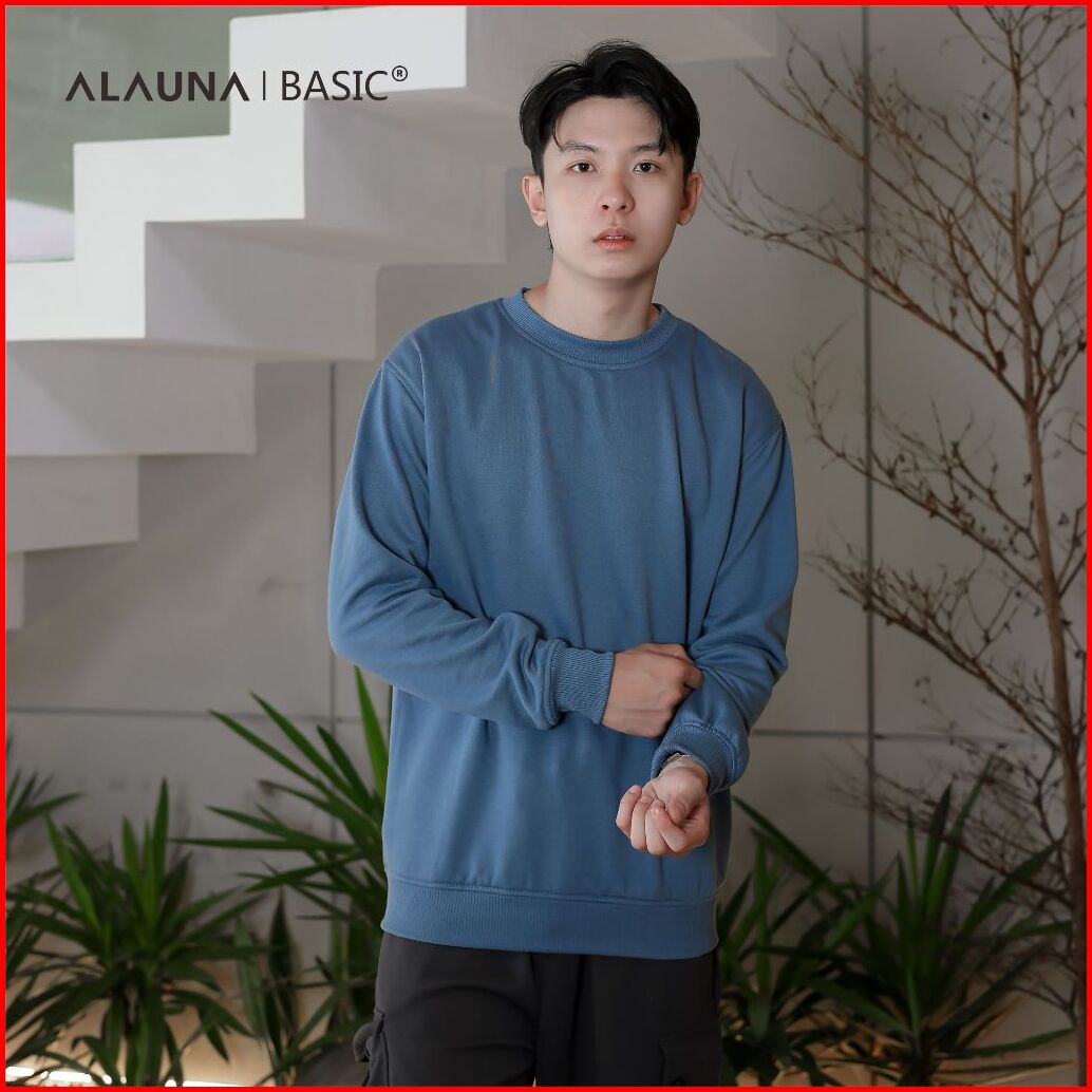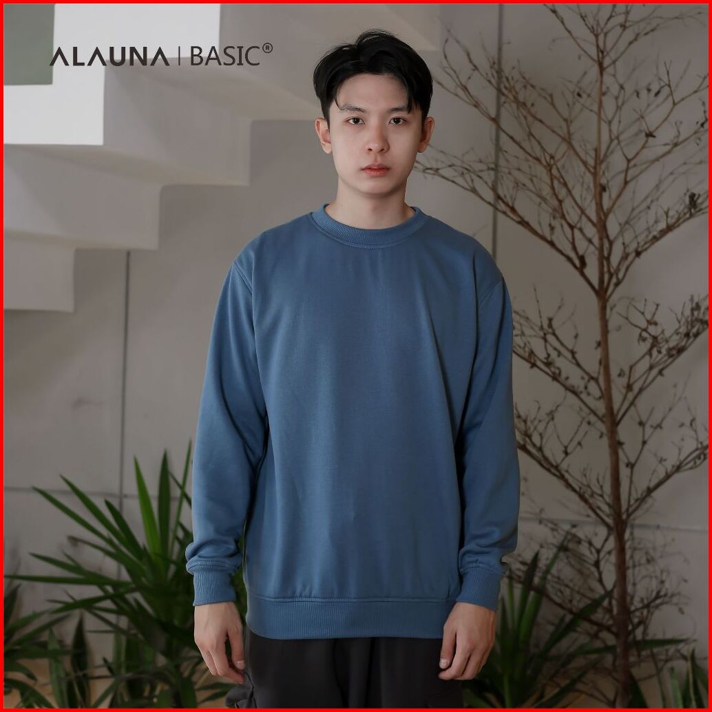 Alauna Basic - Sweater Crewneck Polos Sweatshirt Bahan Fleece Tebal Gramasi 280 Premium Denim