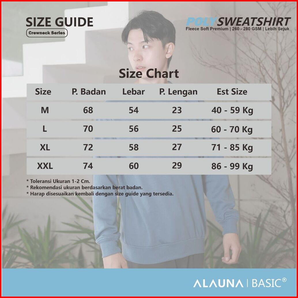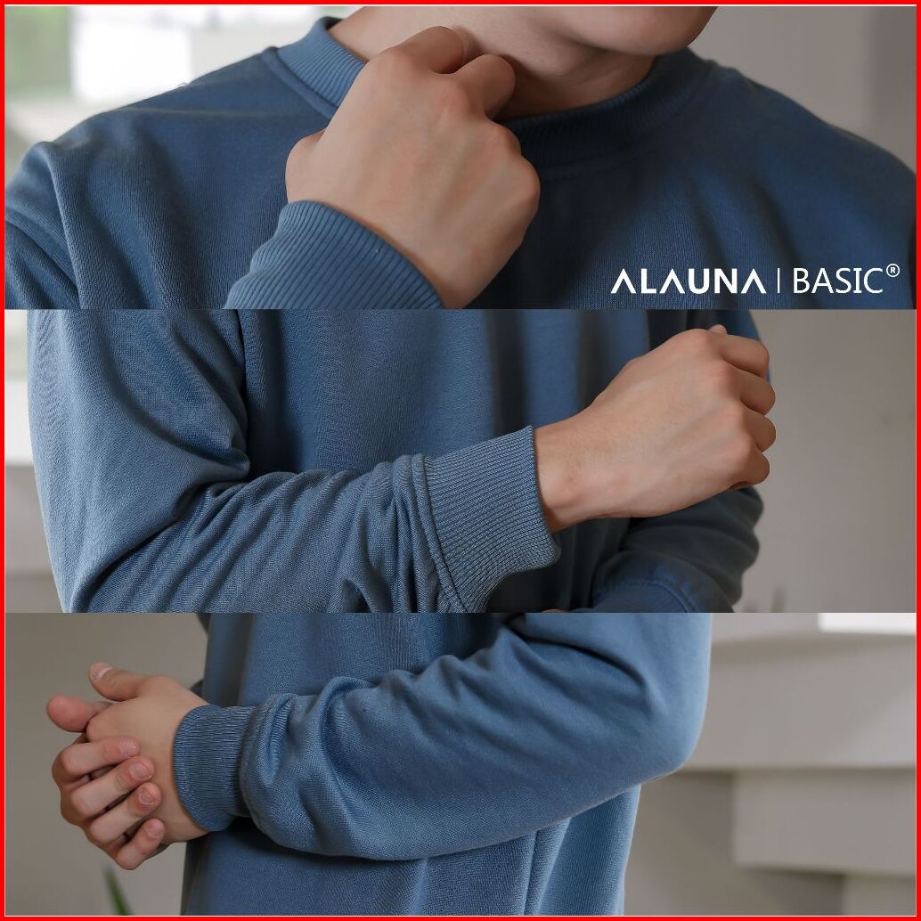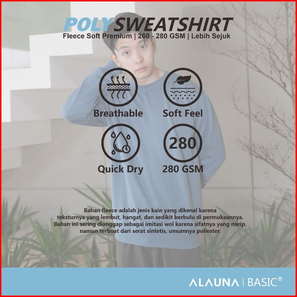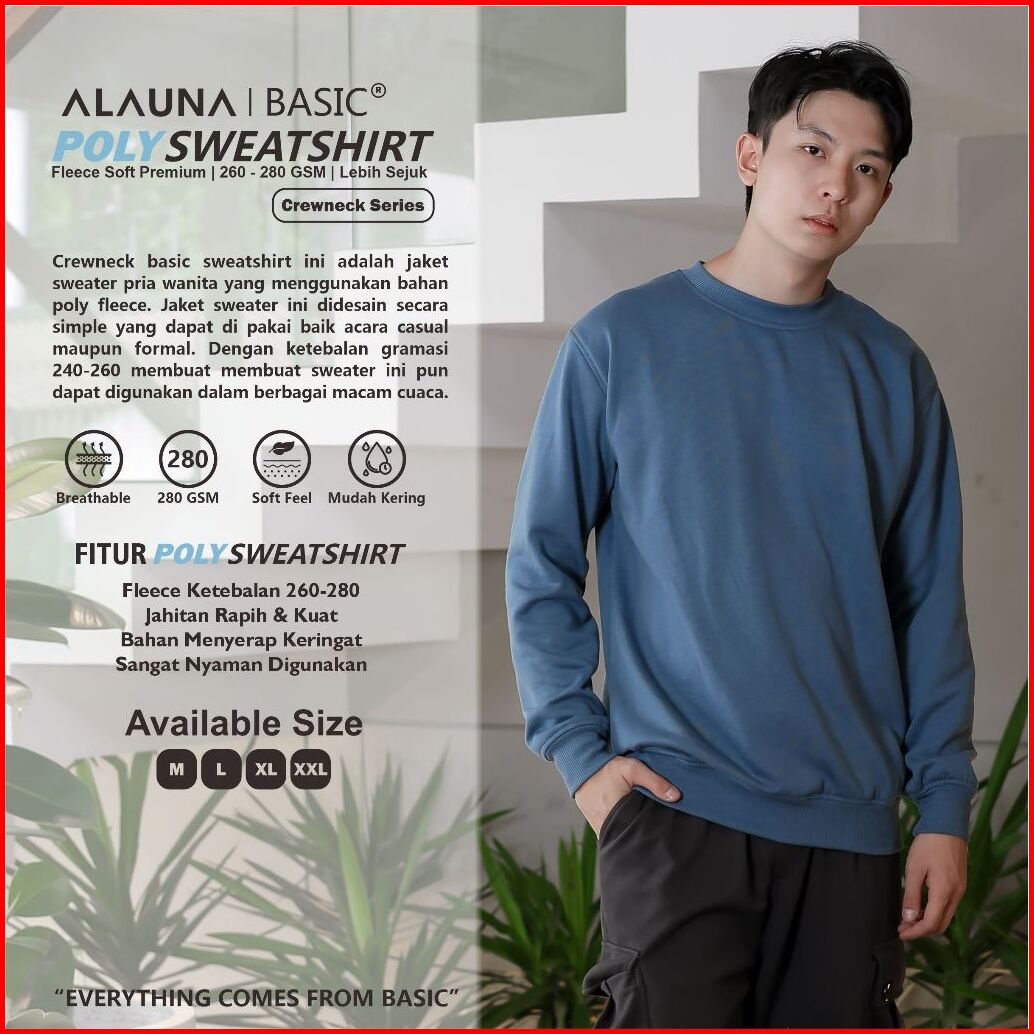 Alauna Basic - Sweater Crewneck Polos Sweatshirt Bahan Fleece Tebal Gramasi 280 Premium Denim