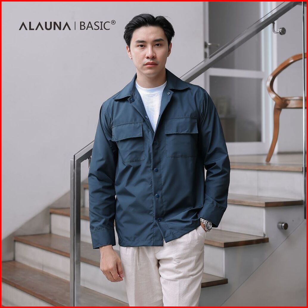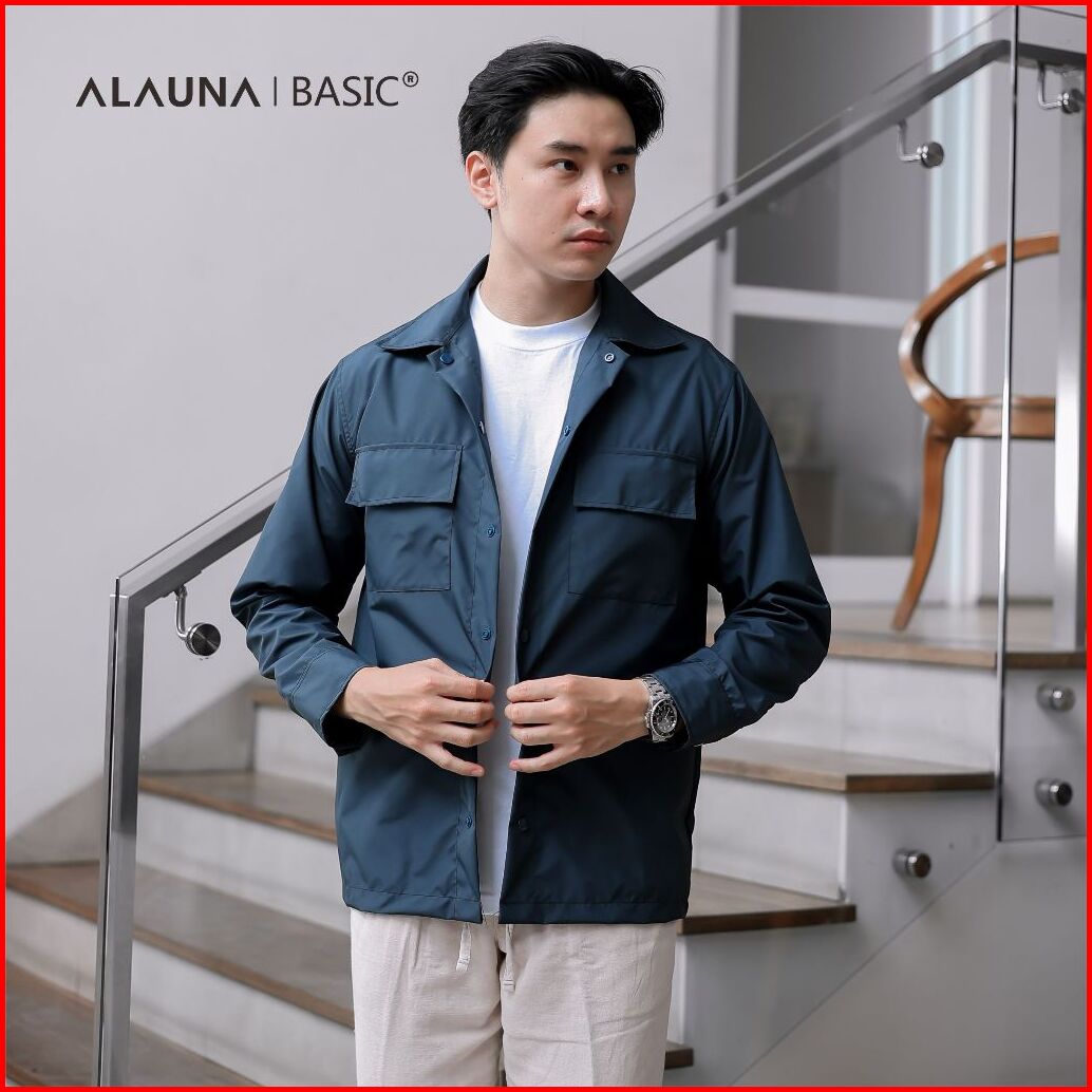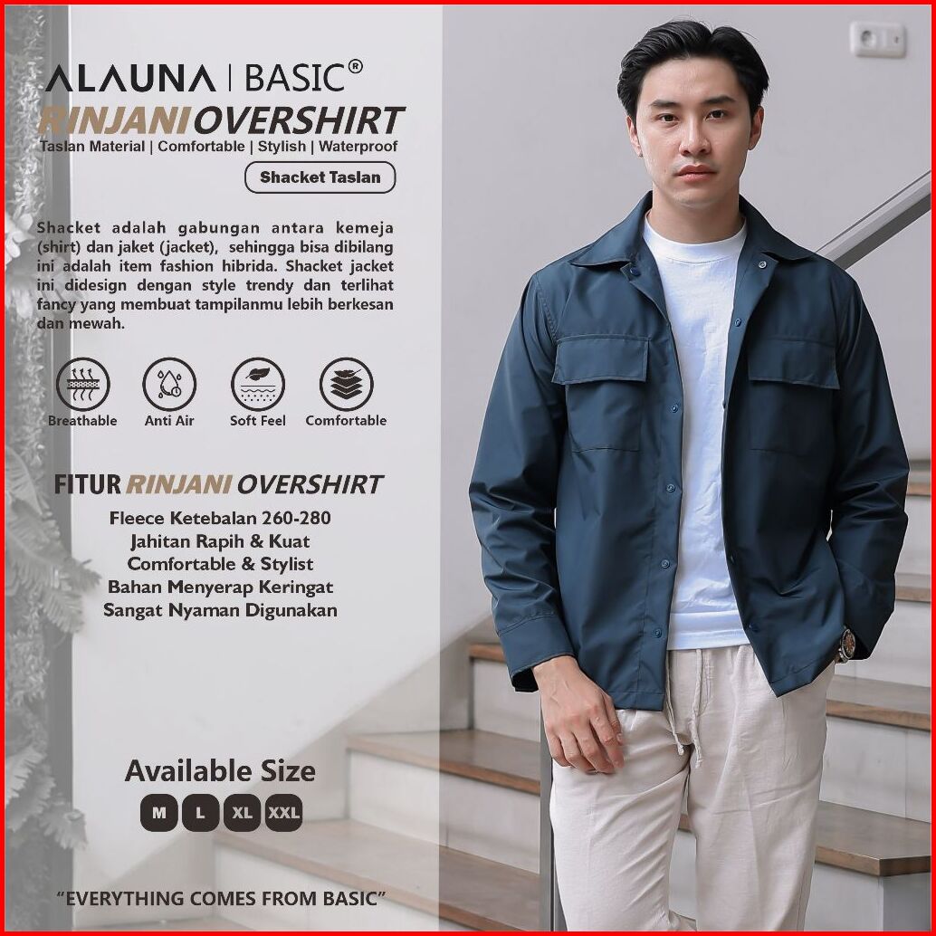 Alauna Basic - Shacket Jacket Overshirt Bahan Taslan Polyester Basic Jaket Pria Premium Navy