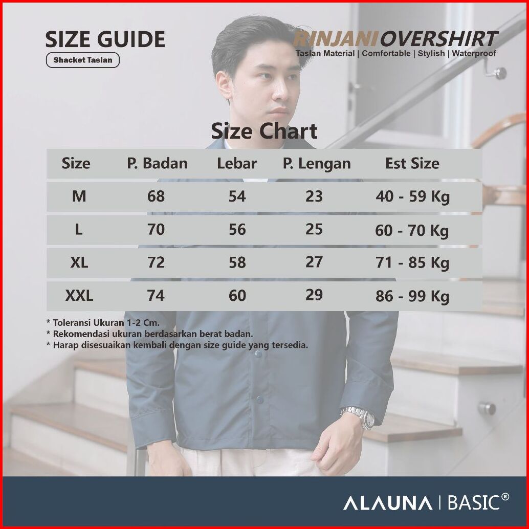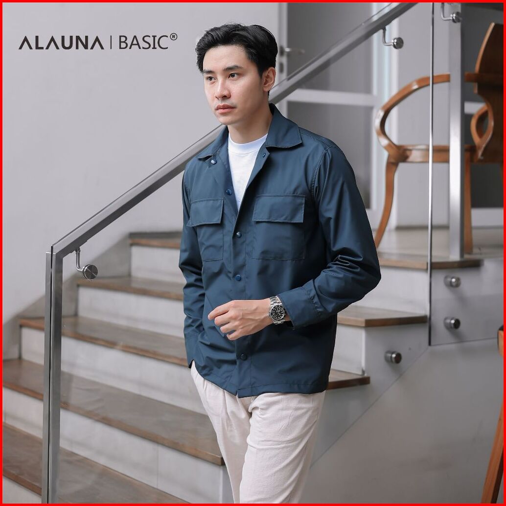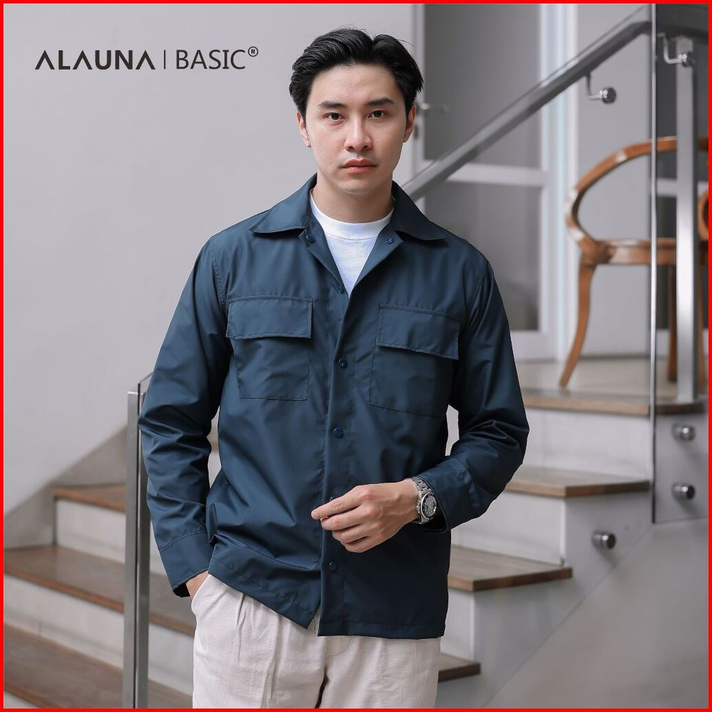 Alauna Basic - Shacket Jacket Overshirt Bahan Taslan Polyester Basic Jaket Pria Premium Navy