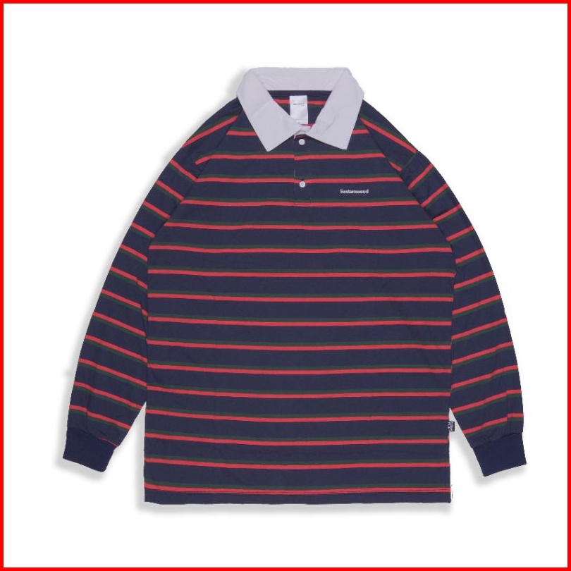 Easternwood Rugby Shirt Long Sleeve Polo Shirt Polo Lengan Panjang Stripe Merah