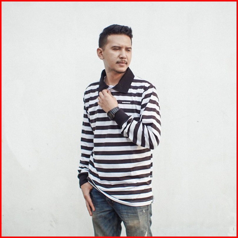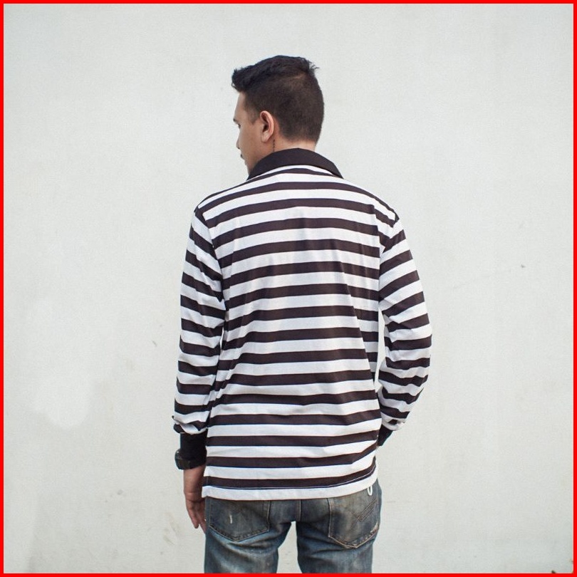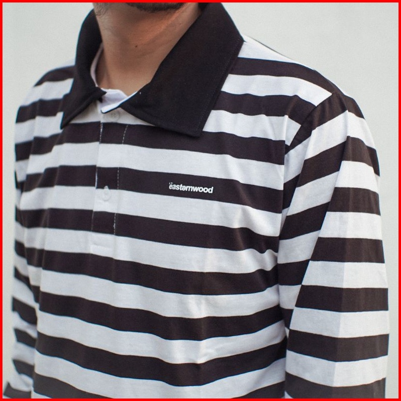 Easternwood Rugby Shirt Long Sleeve Polo Shirt Polo Lengan Panjang Stripe Hitam