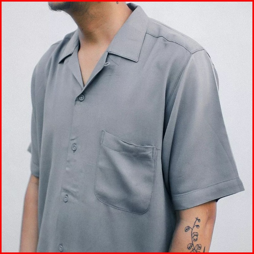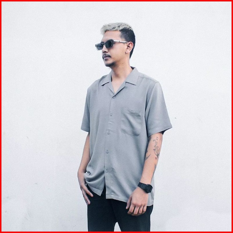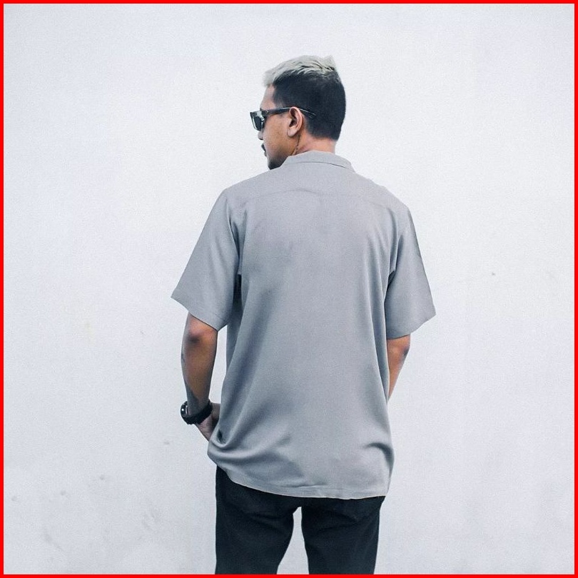 Easternwood Kemeja Oversized Abu Lengan Pendek Bowling Shirt