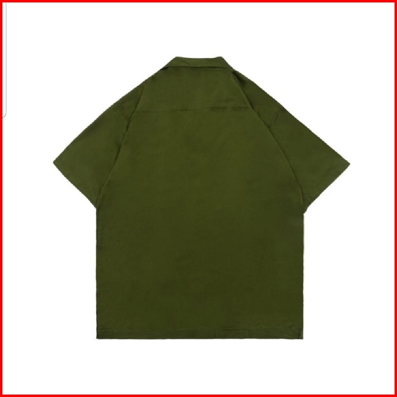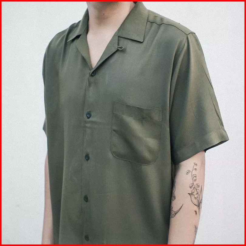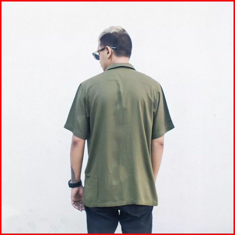 Easternwood Kemeja Oversized Hijau Olive Lengan Pendek Bowling Shirt