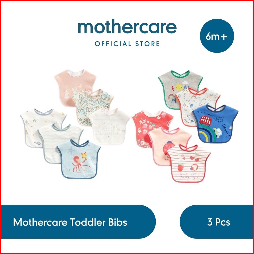 Mothercare Toddler Bibs 6 Months 3 Packs - Celemek Makan Anak Bayi