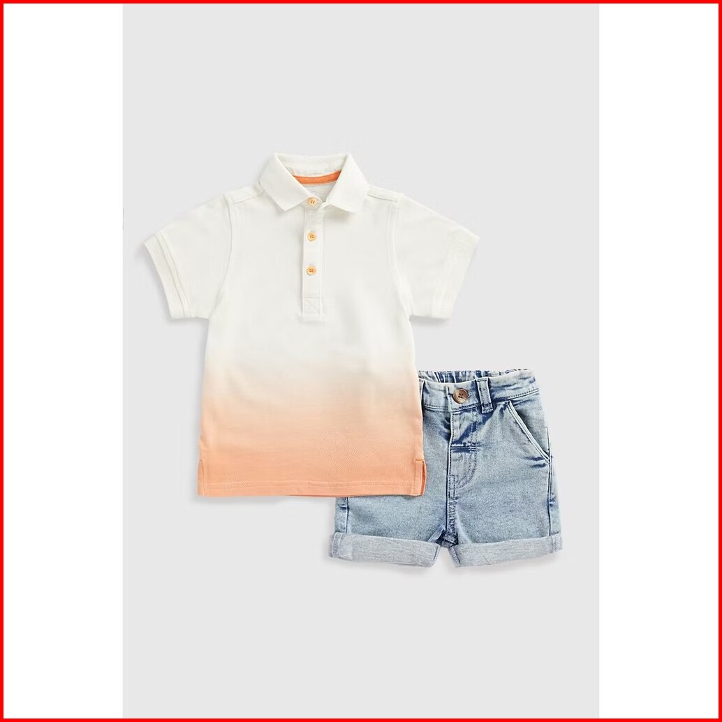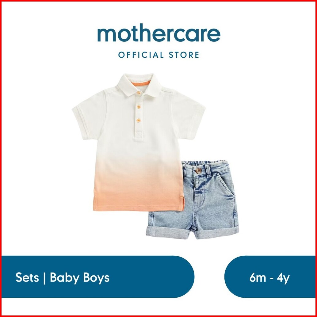 Mothercare Polo Shirt And Denim Shorts Set - Set Pakaian Bayi Laki-laki Putih