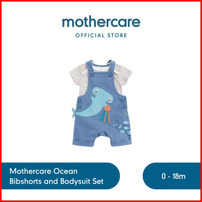 Mothercare Ocean Bibshorts And Bodysuit Set - Set Pakaian Bayi Laki-laki Biru