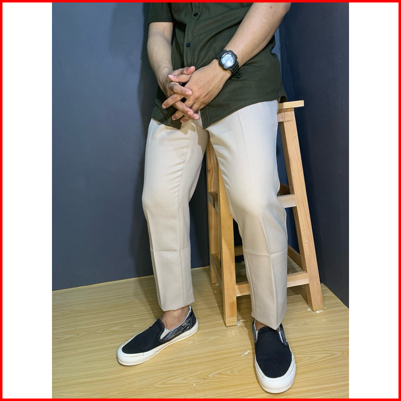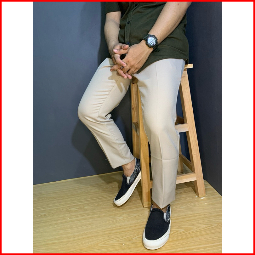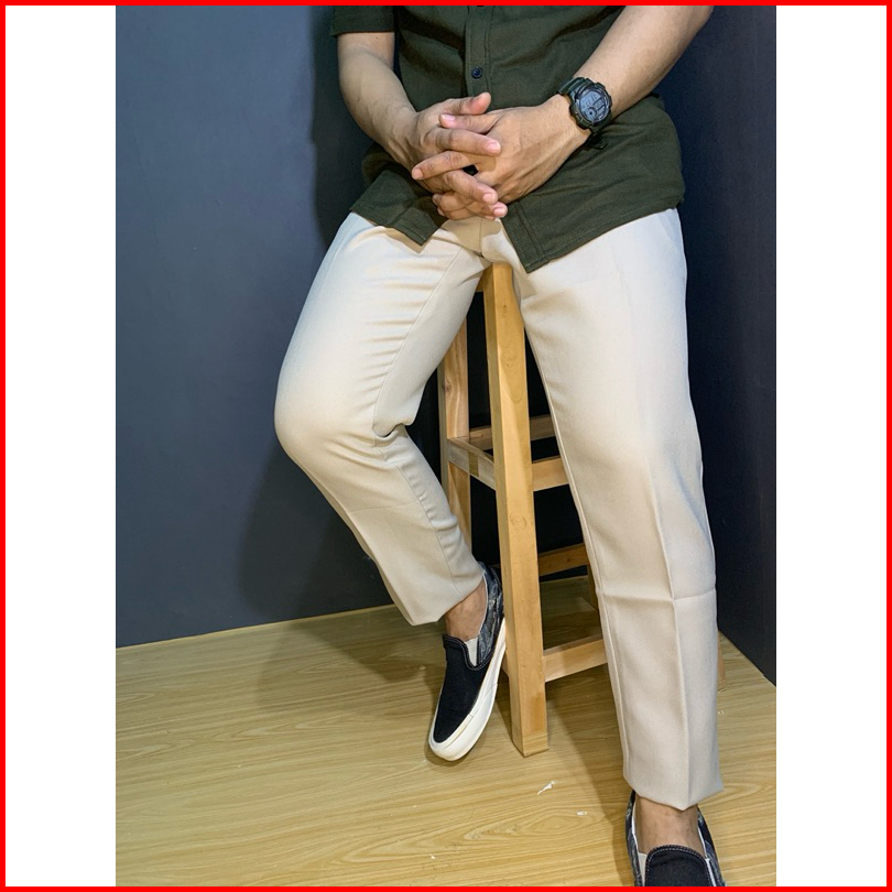Celana Panjang Pria Bahan Kerja Kantor Formal Slimfit Premium Cream Size 27 - 38