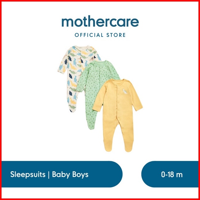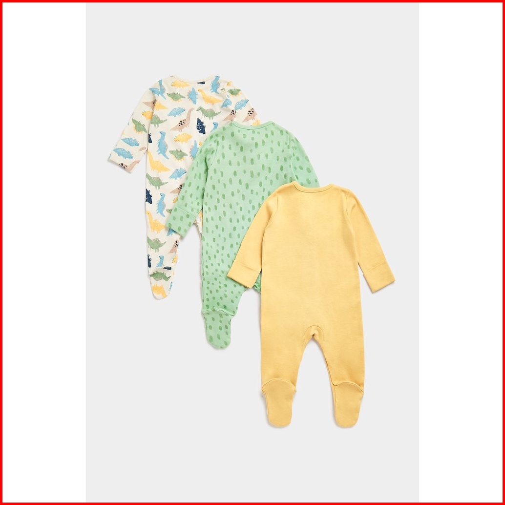 Mothercare Dinosaur Sleepsuits - 3 Pack - Set Pakaian Tidur Bayi Laki-laki Kuning