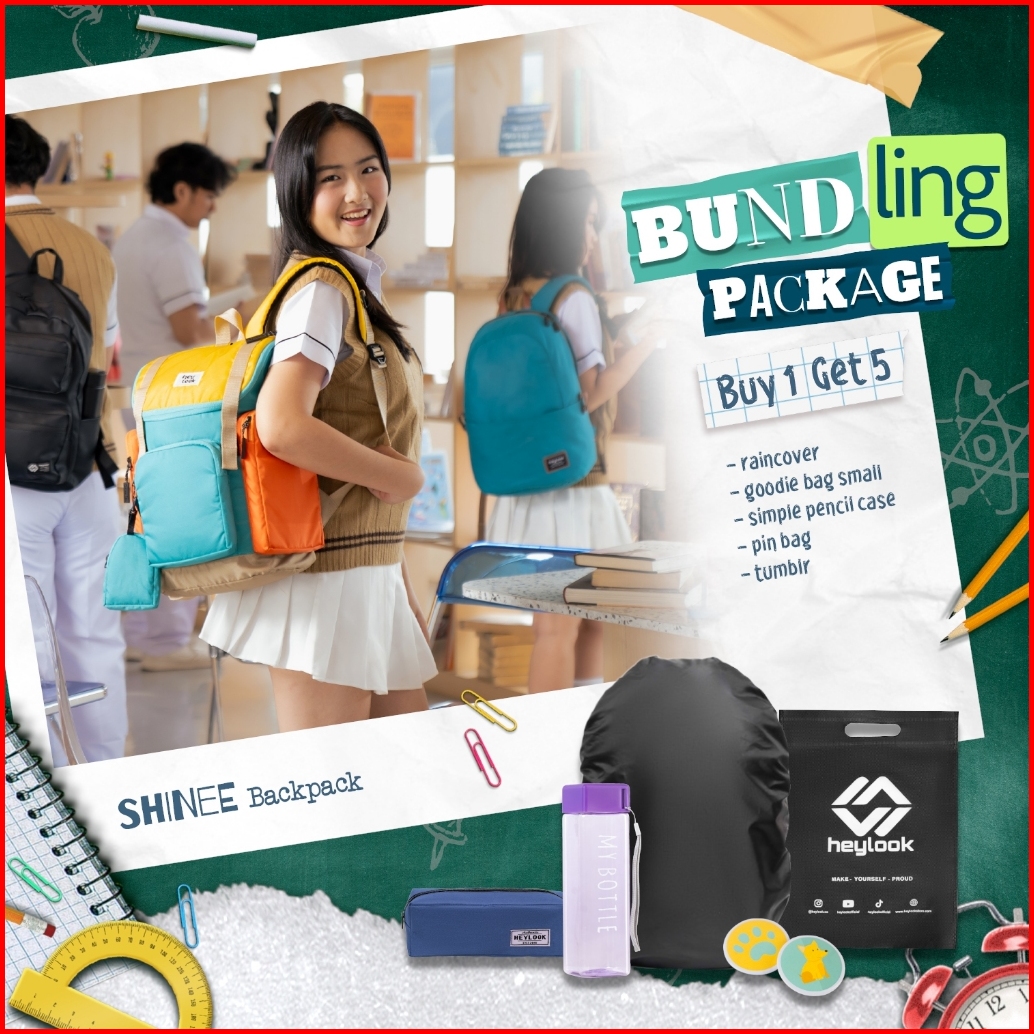 Heylook - Paket Hemat Junior Tas Ransel Shinee Tas Backpack Punggung Wanita Cewek Tas Sekolah Perempuan Tas Kuliah Tas L