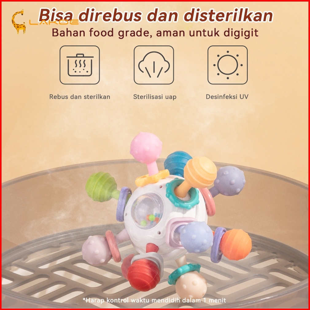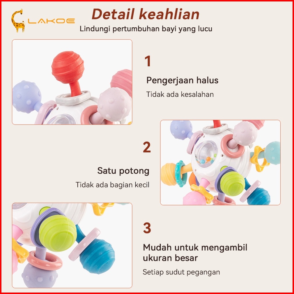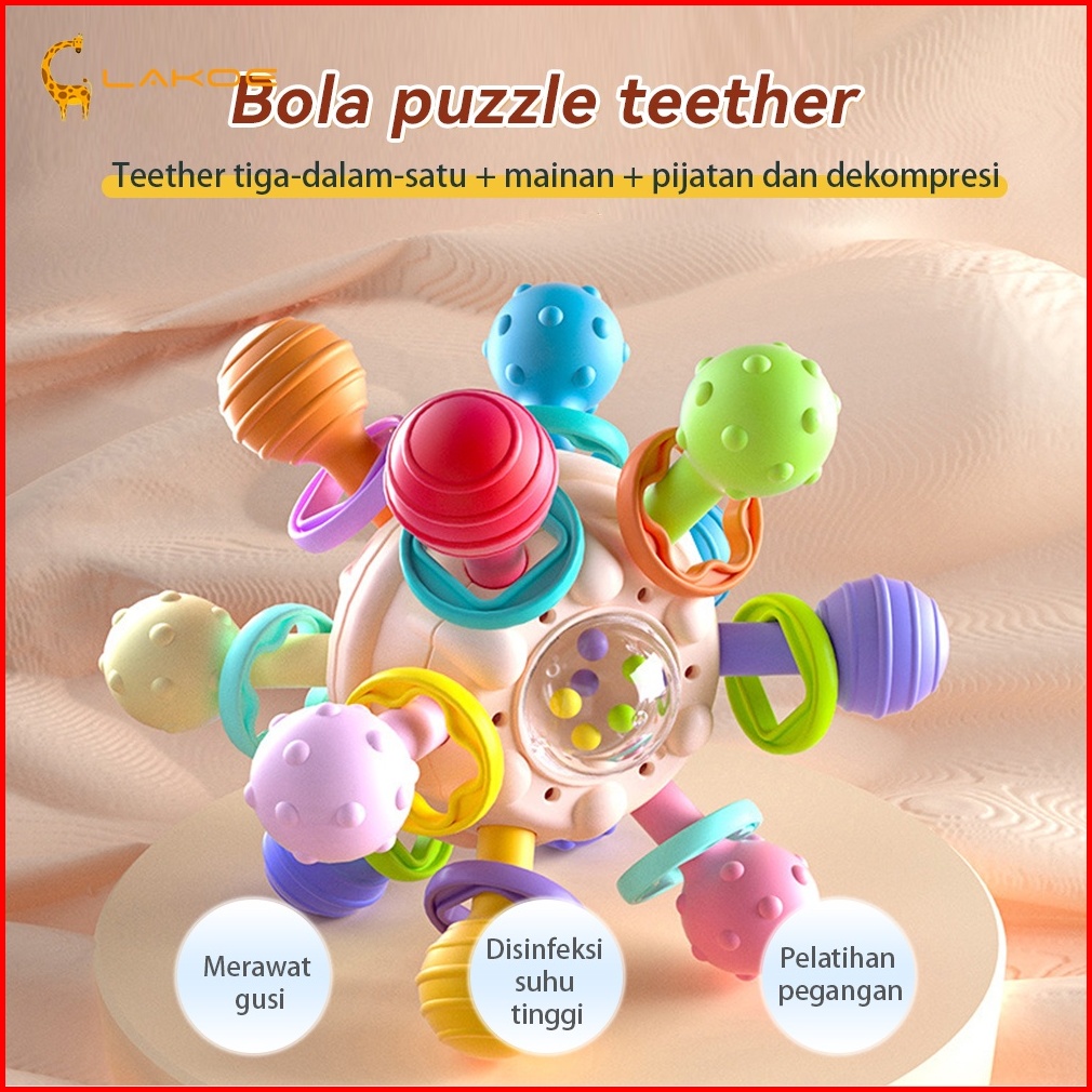 Lakoeofficialmall Mainan Edukasi Anak Bayi Sensorik Montessori Bahan Silikon Mainan Teether Bola Bayi