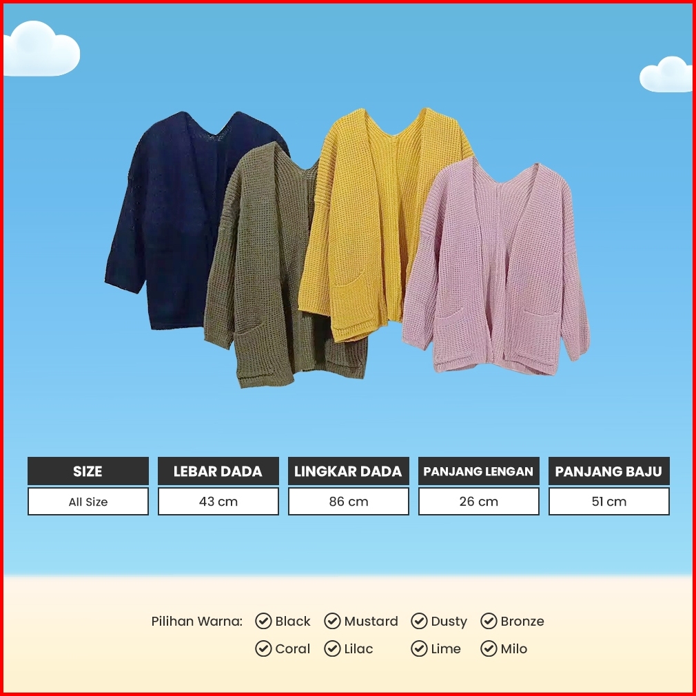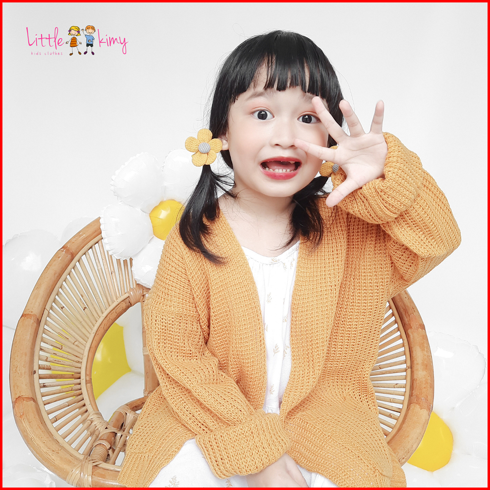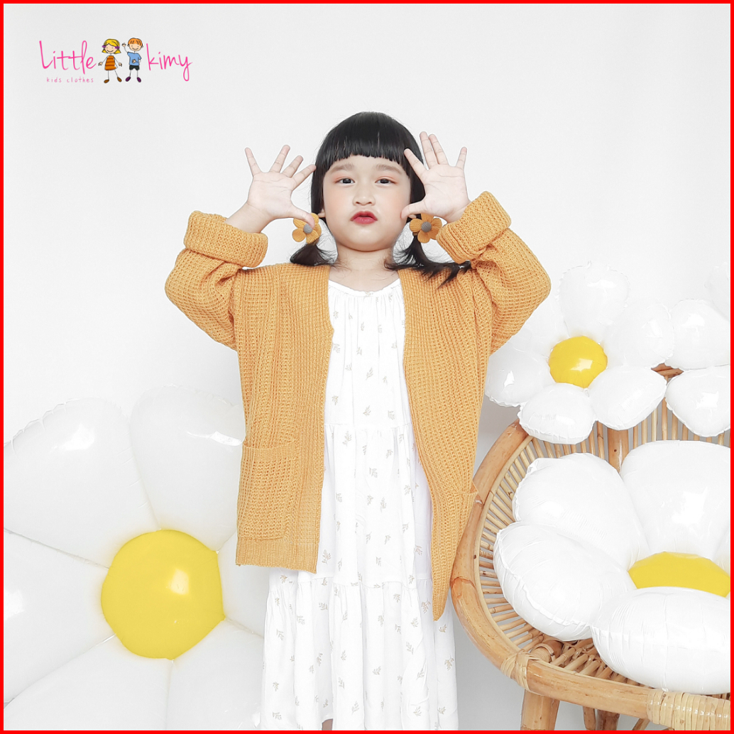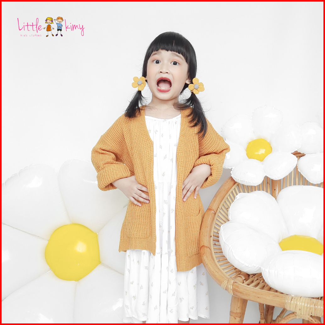 Littlekimy Deandra - Cardigan Anak Rajut Oversize Kardigan Polos Anak Perempuan Usia 4-8 Tahun