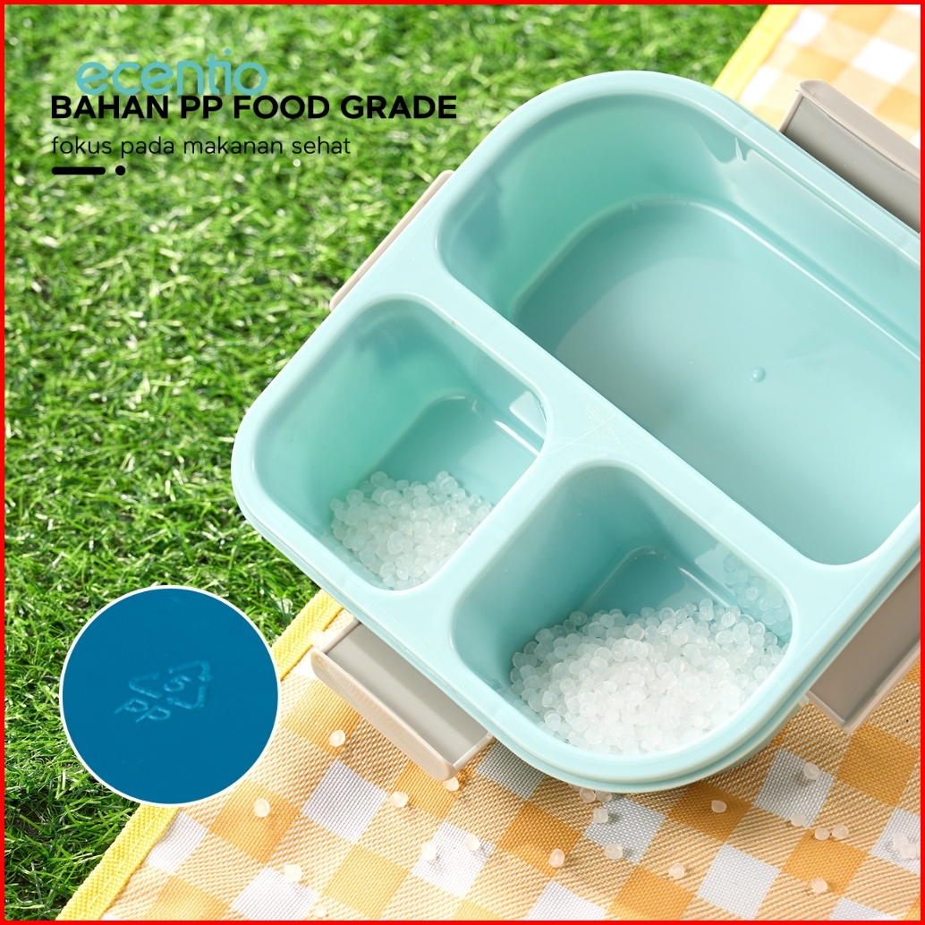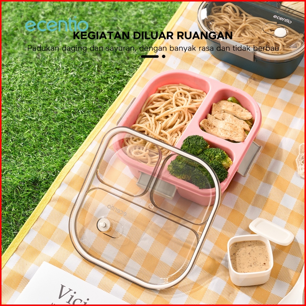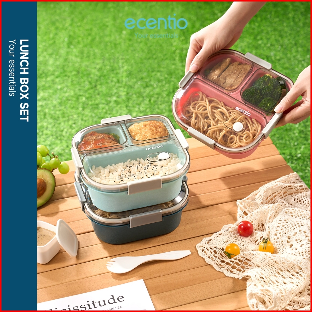 Ecentio 3 Grid Anti Tumpah Tempat Bekal 1100ml Kotak Makan Wadah Bekal Kotak Sup 100ml Bpa Free-hw