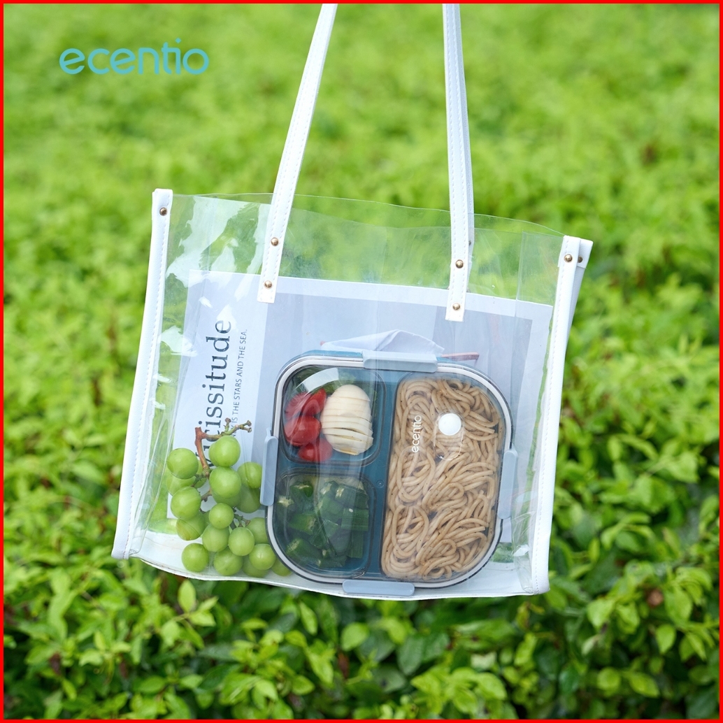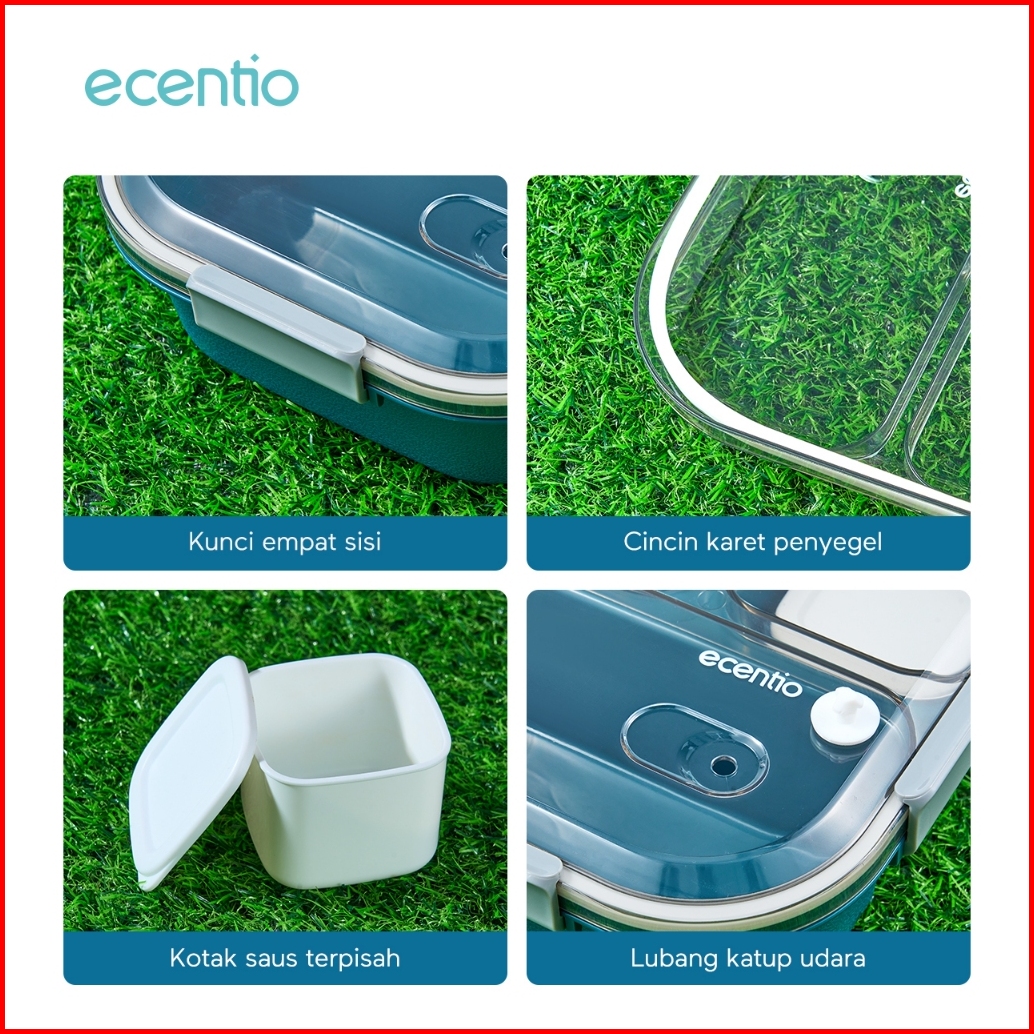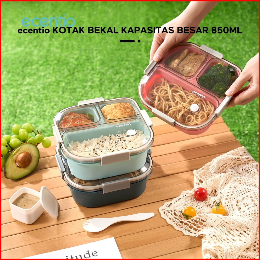 Ecentio 3 Grid Anti Tumpah Tempat Bekal 1100ml Kotak Makan Wadah Bekal Kotak Sup 100ml Bpa Free-hw
