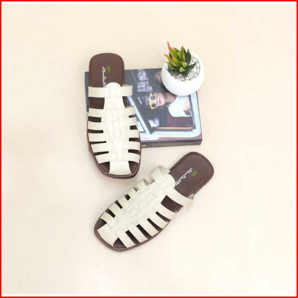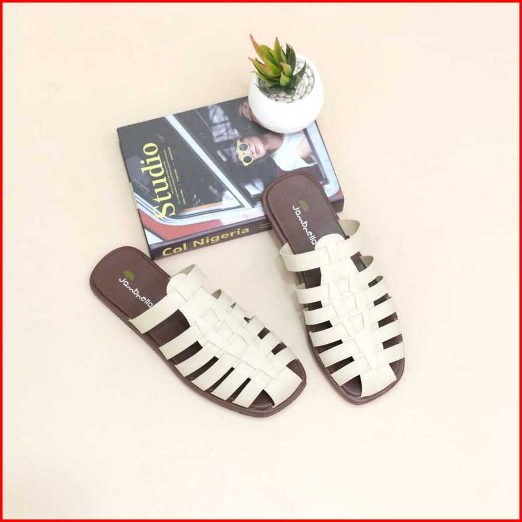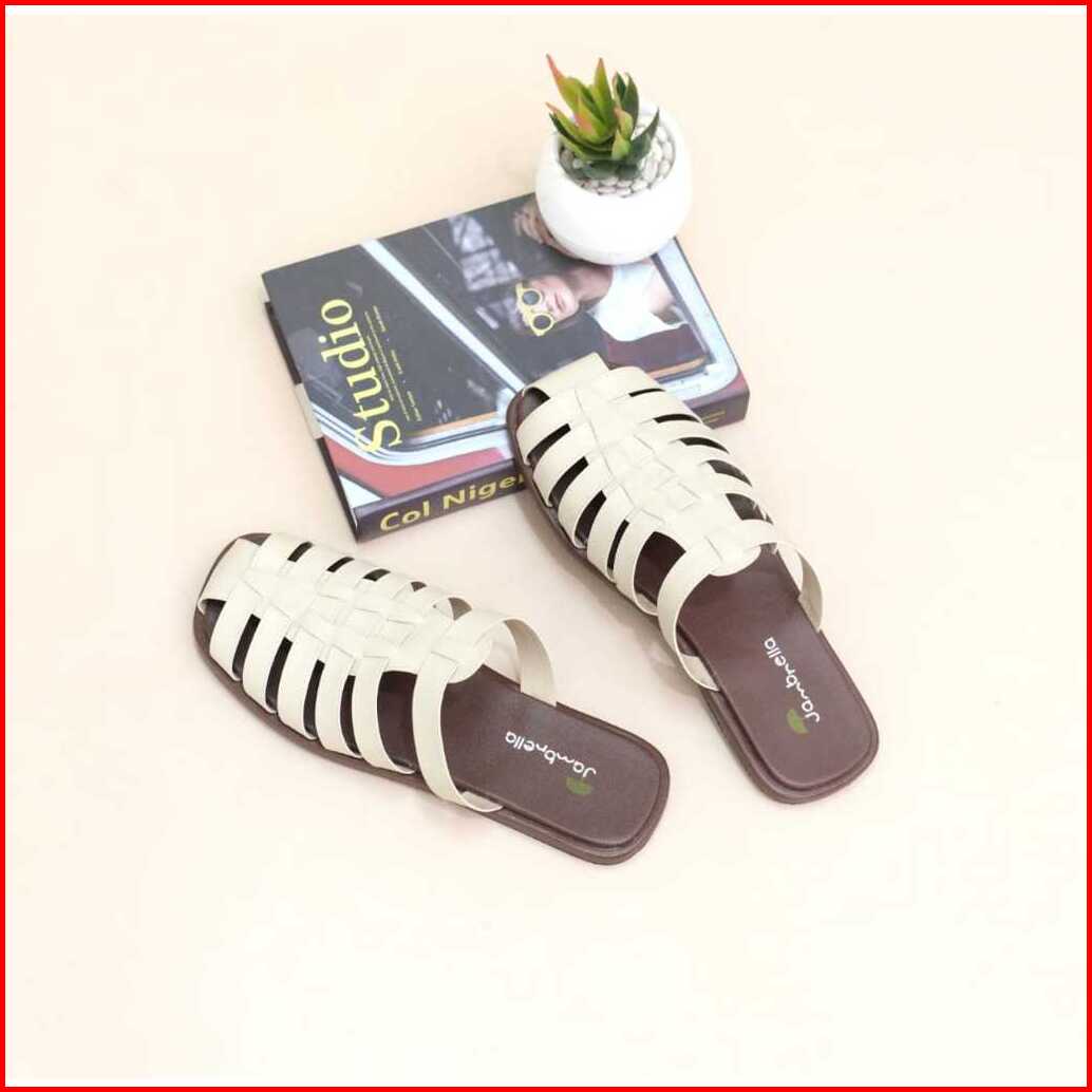 Jambrella Ritsuki Cream Sandal Flat Wanita Sandal Slop Wanita Trendy