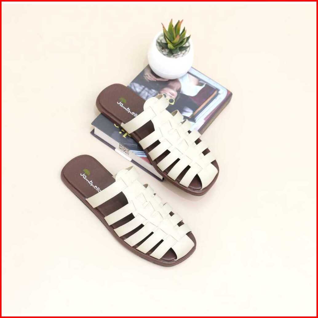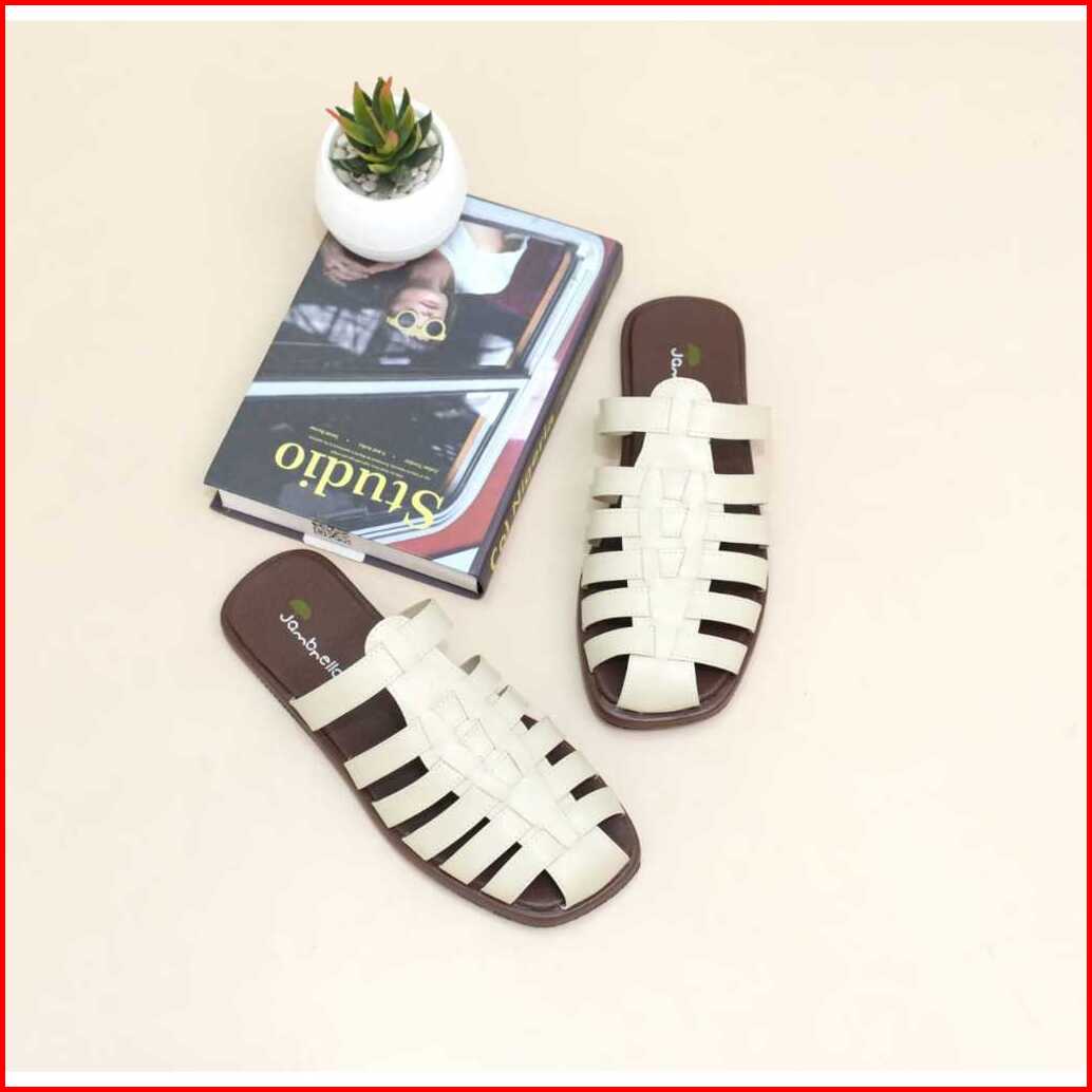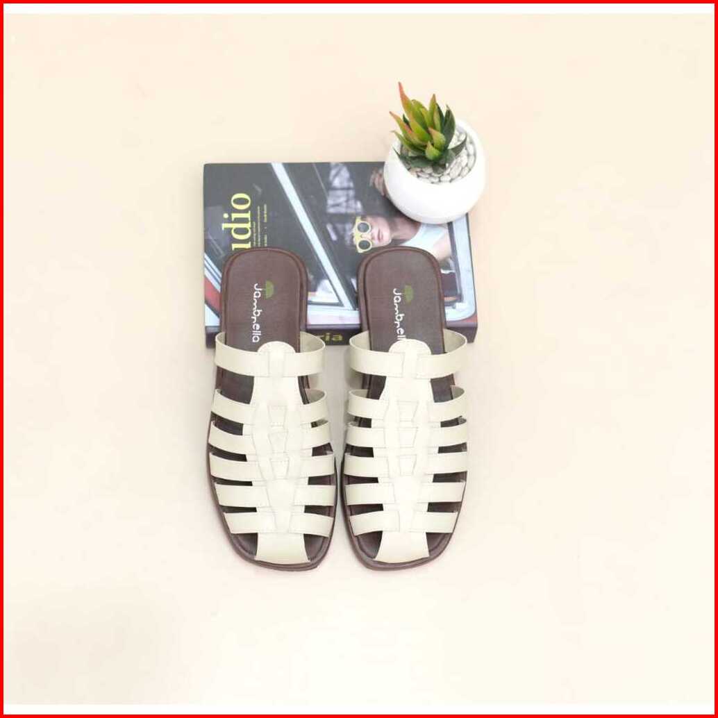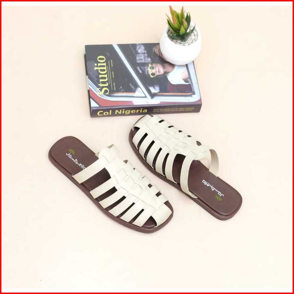 Jambrella Ritsuki Cream Sandal Flat Wanita Sandal Slop Wanita Trendy