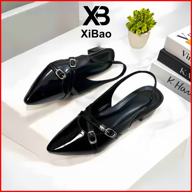 Sendal Wanita Heels Mules Gesper Silang Terbaru Kekinian