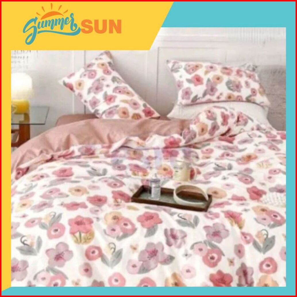 Bed Cover Set Pink Amona Mix Plain Baby Pink - Flower - 90x200 - 200x200 - Ukuran Terlengkap - Summersun09