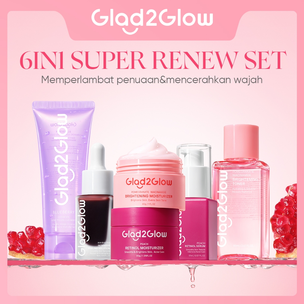 [Mall]GLAD2GLOW OFFICIAL RENEW BUNDLE 7IN1 7PCS MENCERAHKAN MELEMBABKAN KULIT SKINCARE G2G ORIGINAL BPOM