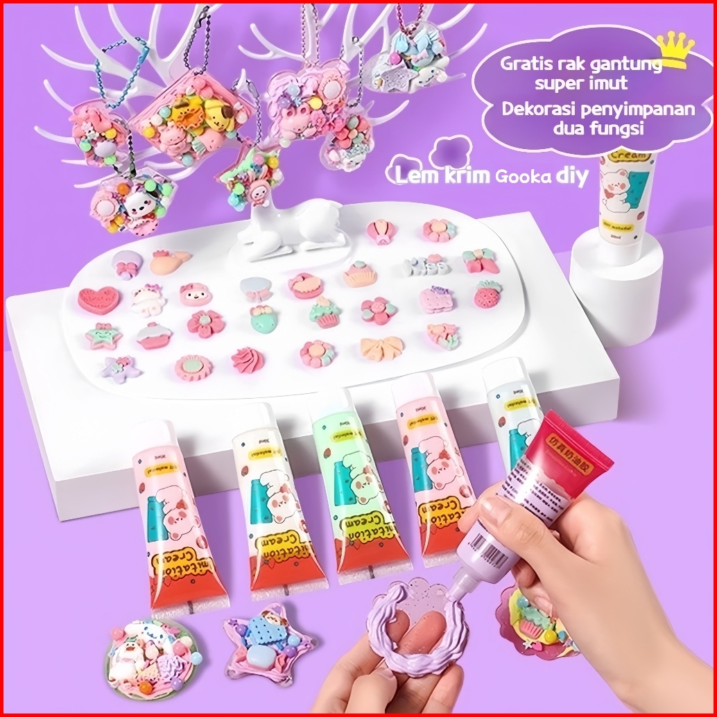 Ready Stock825 522pcs Diy Set Gantungan Kunci Akrilik Diy Keychain Set Kotak Stiker Cream Kartun Mainan Merangsang Kreat