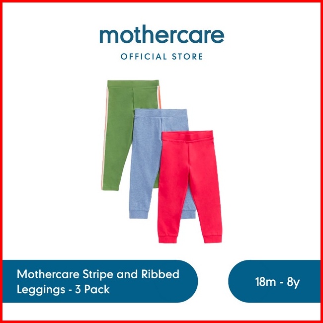 Mothercare Stripe And Ribbed Leggings - 3 Pack - Celana Panjang Anak Perempuan Multi