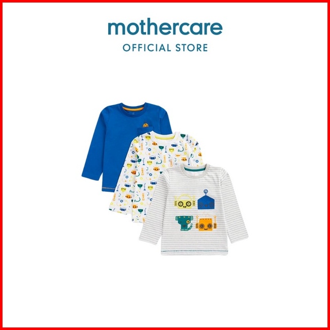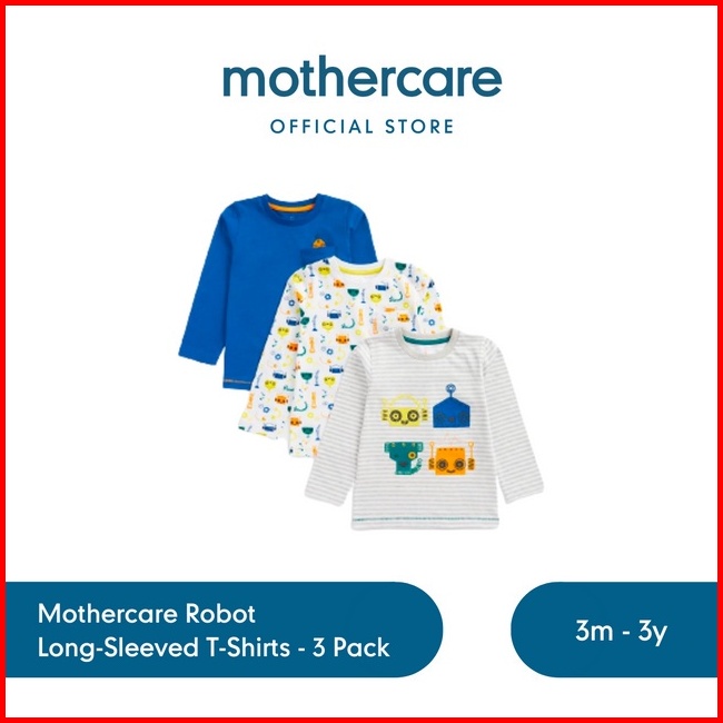Mothercare Robot Long-sleeved T-shirts - 3 Pack - Set Kaos Bayi Laki-laki Multicolor