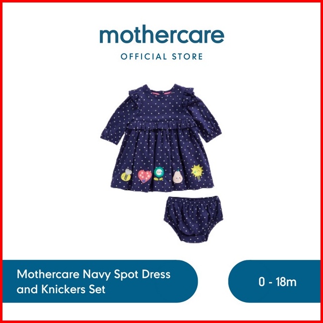 Mothercare Navy Spot Dress And Knickers Set - Dress Bayi Perempuan Biru