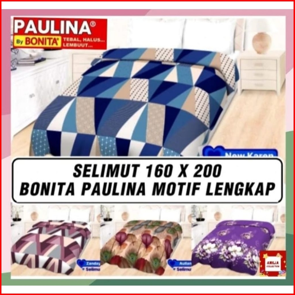 Selimut Bonita Paulina 160x200 Bahan Lembut Adem Free Tas Packing Praktis